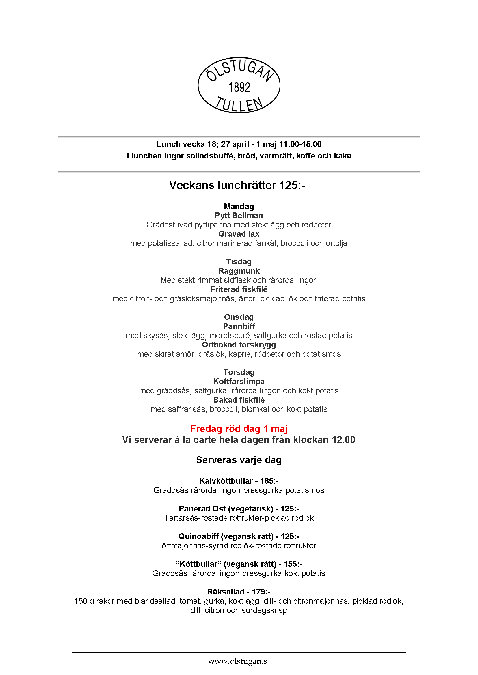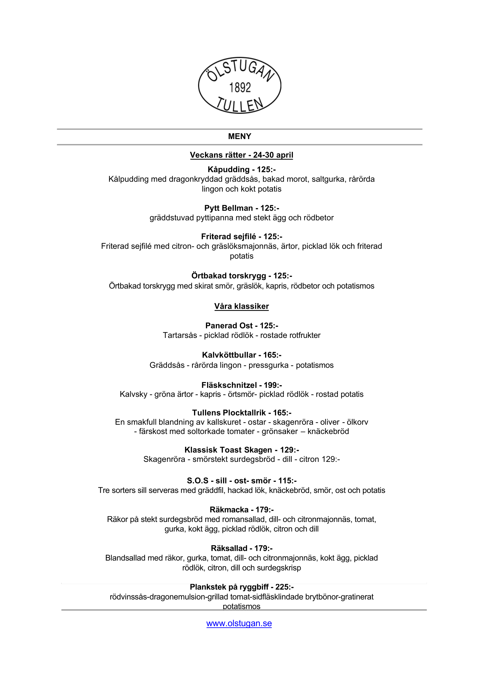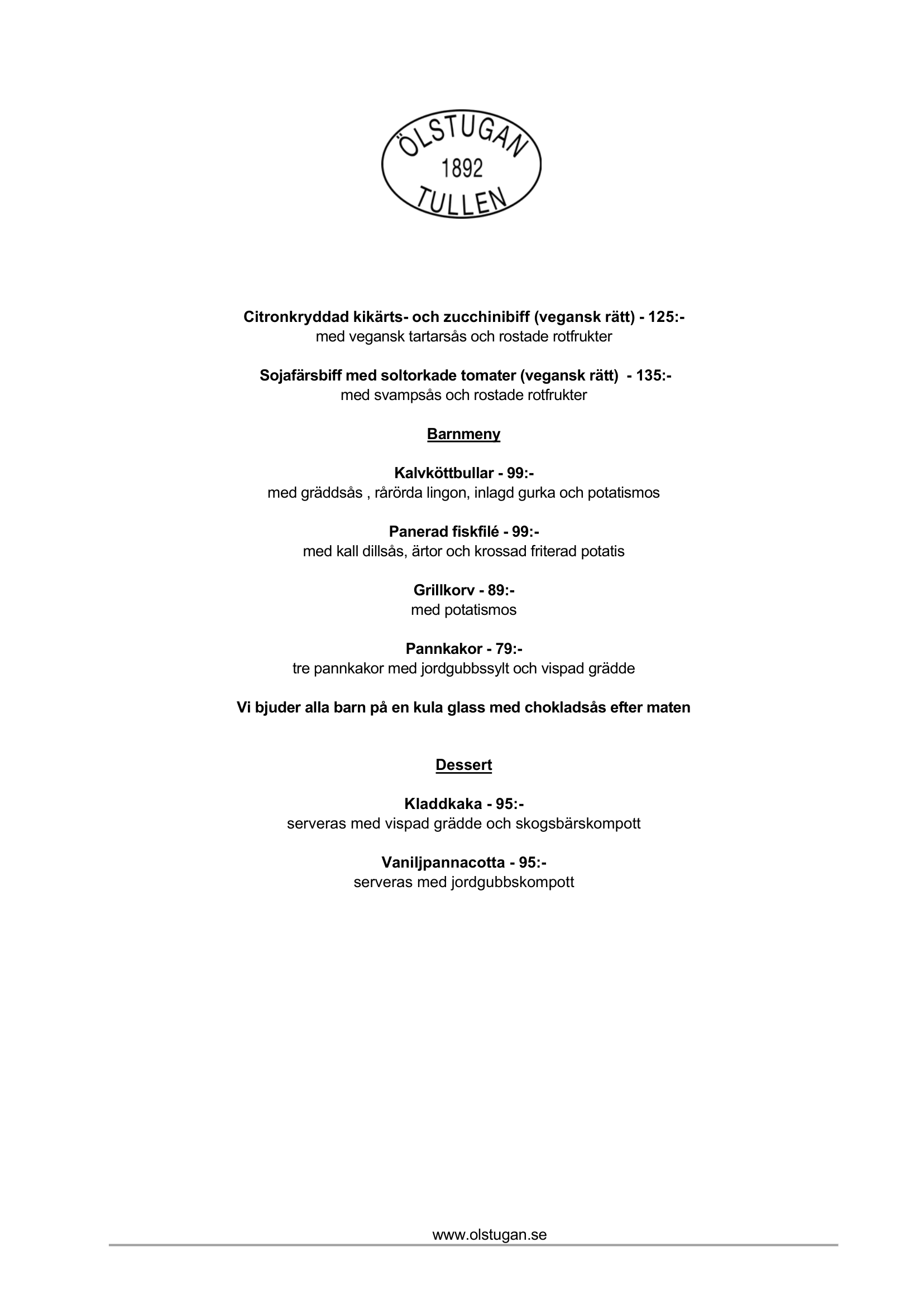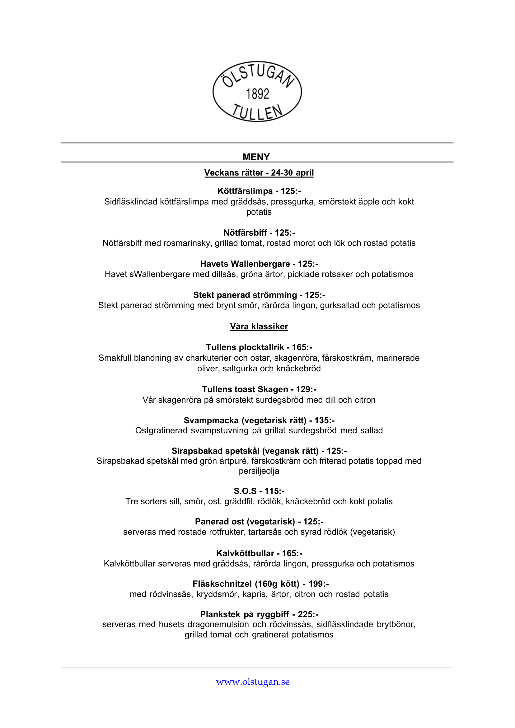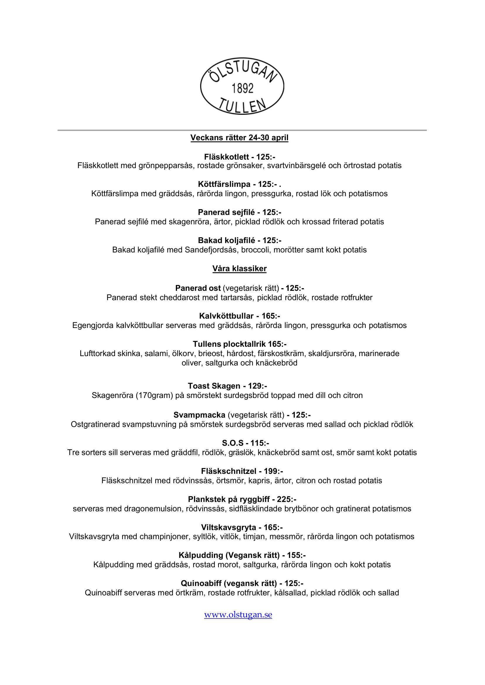 Vi erbjuder vällagad och varierad svensk mat till rimliga priser. För den törstige erbjuds ett stort sortiment av öl och dryck från hela Sverige.