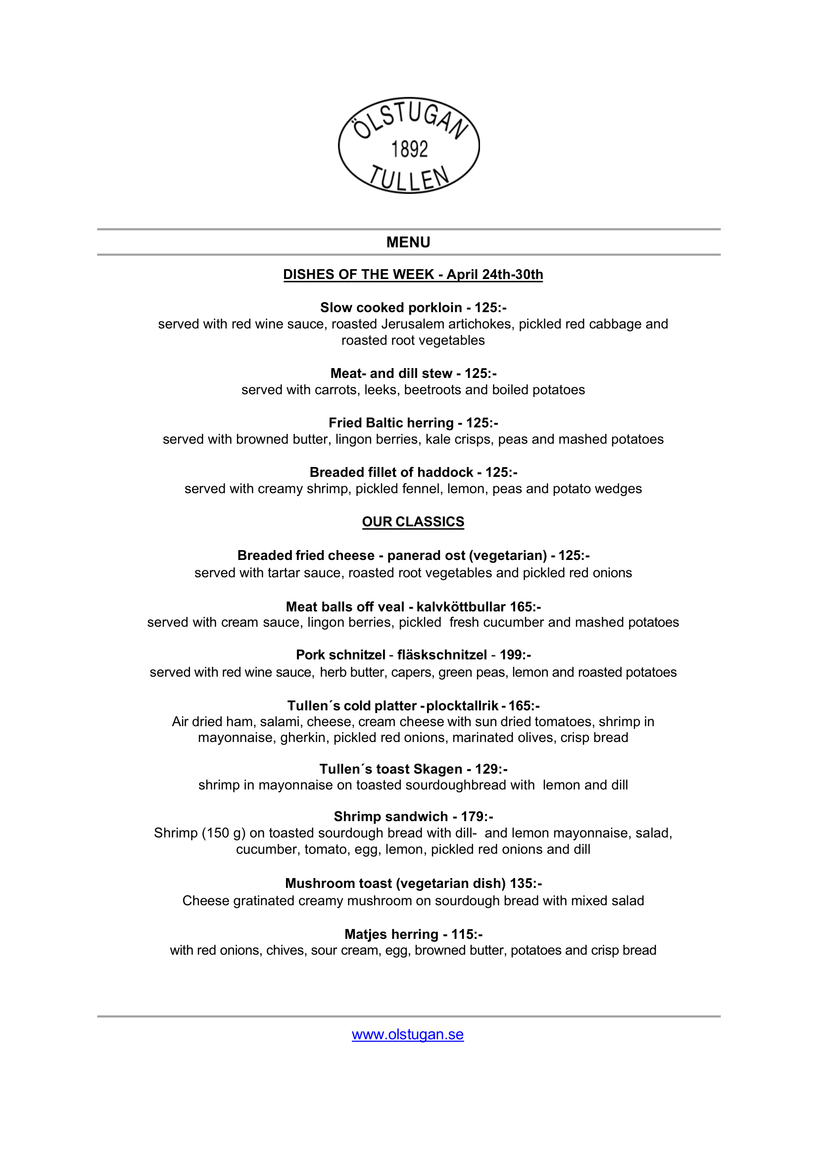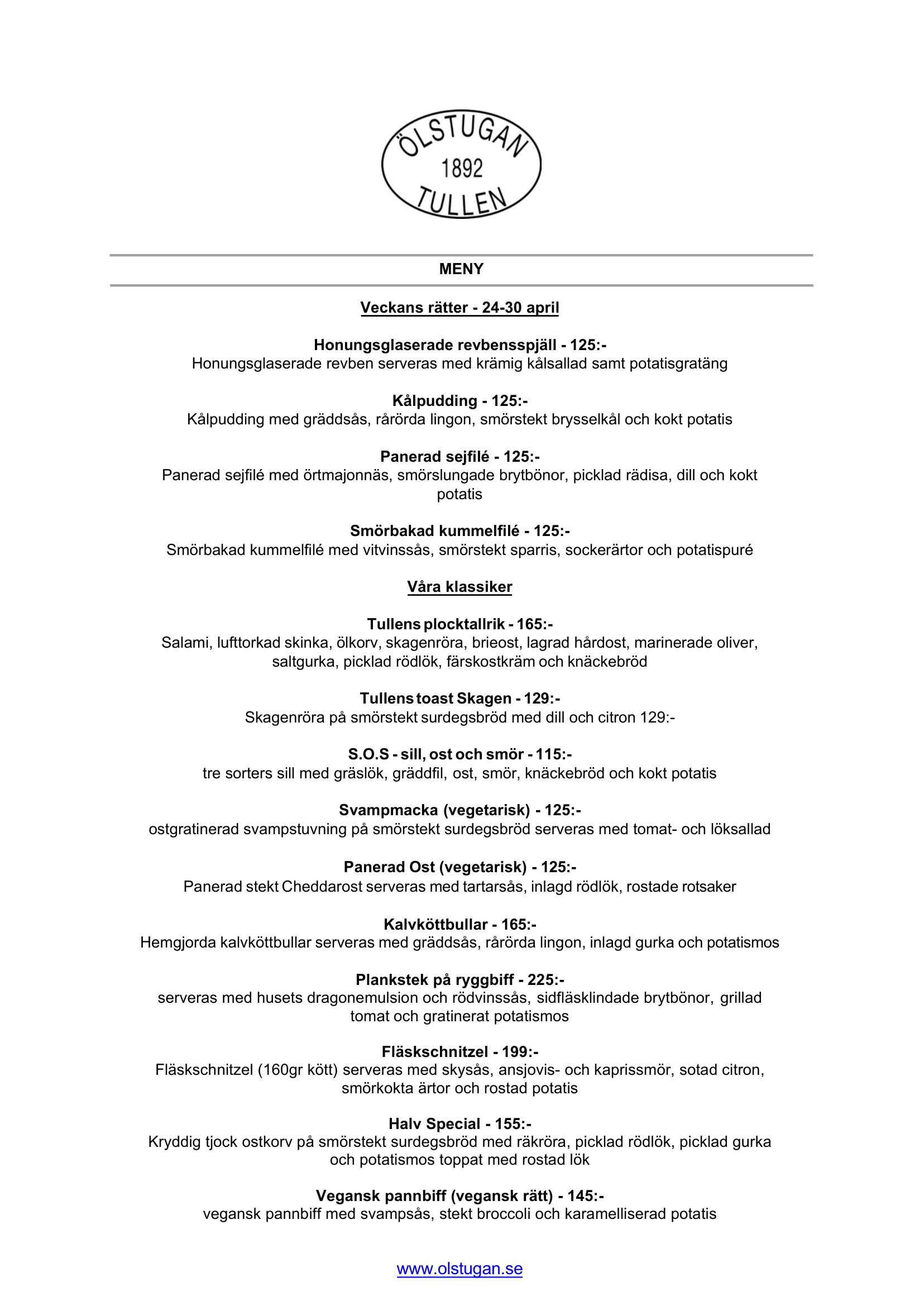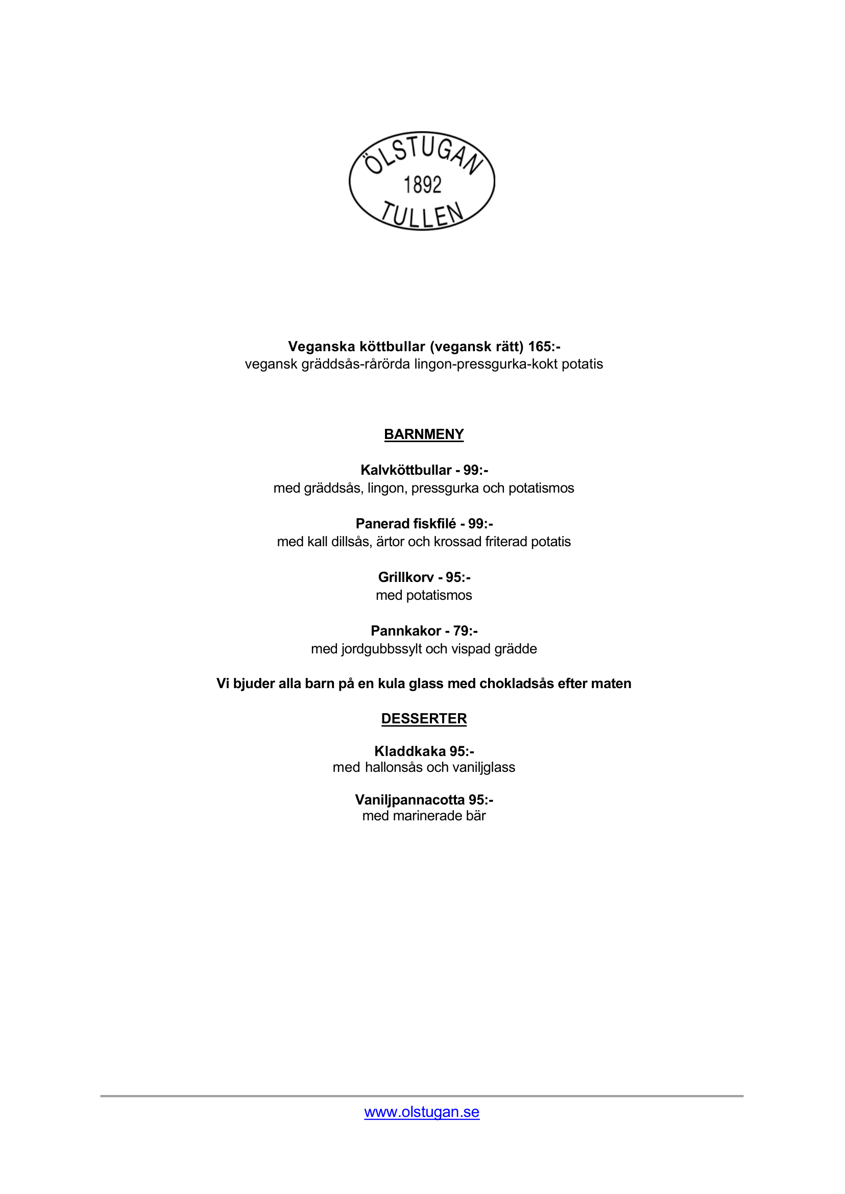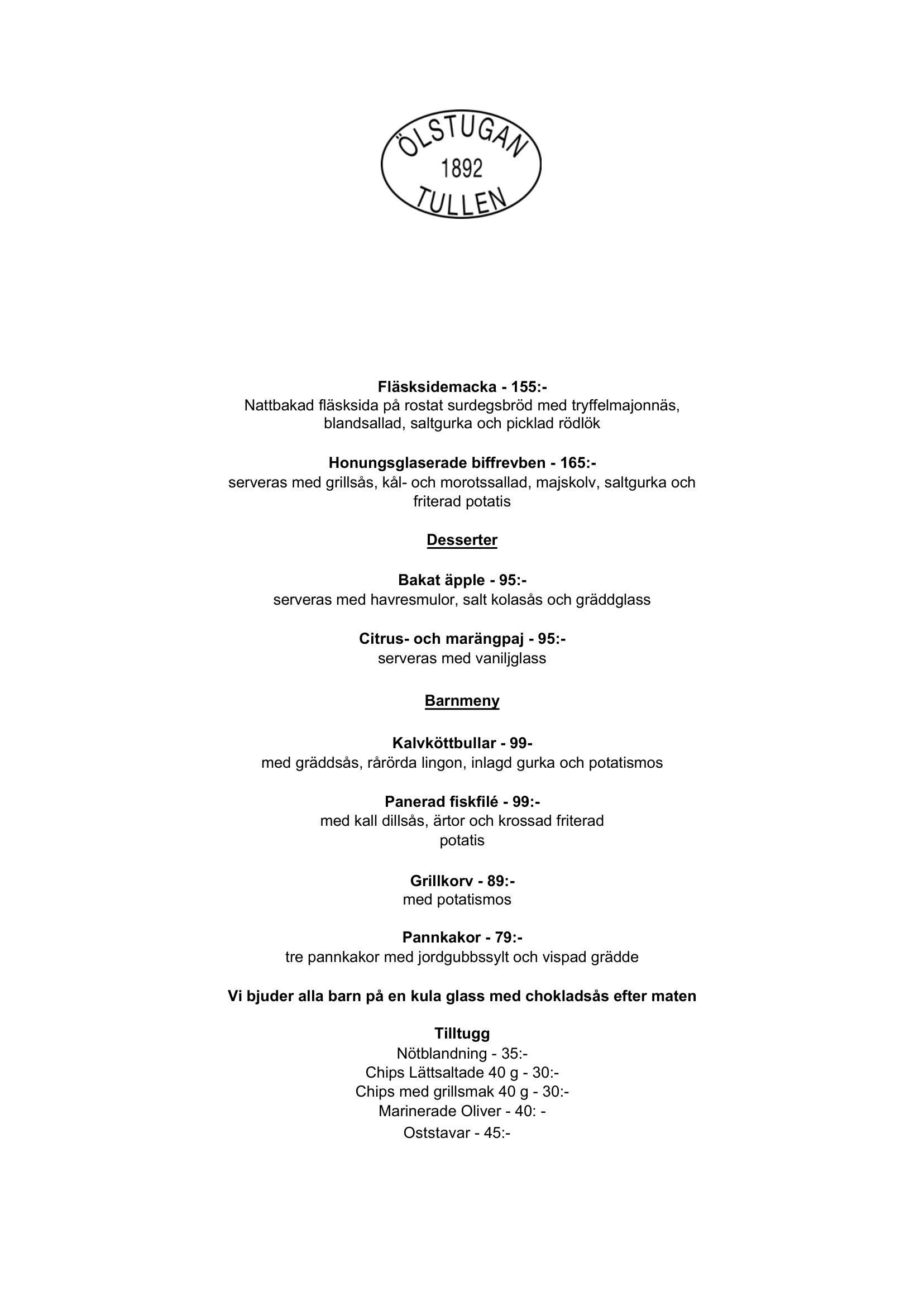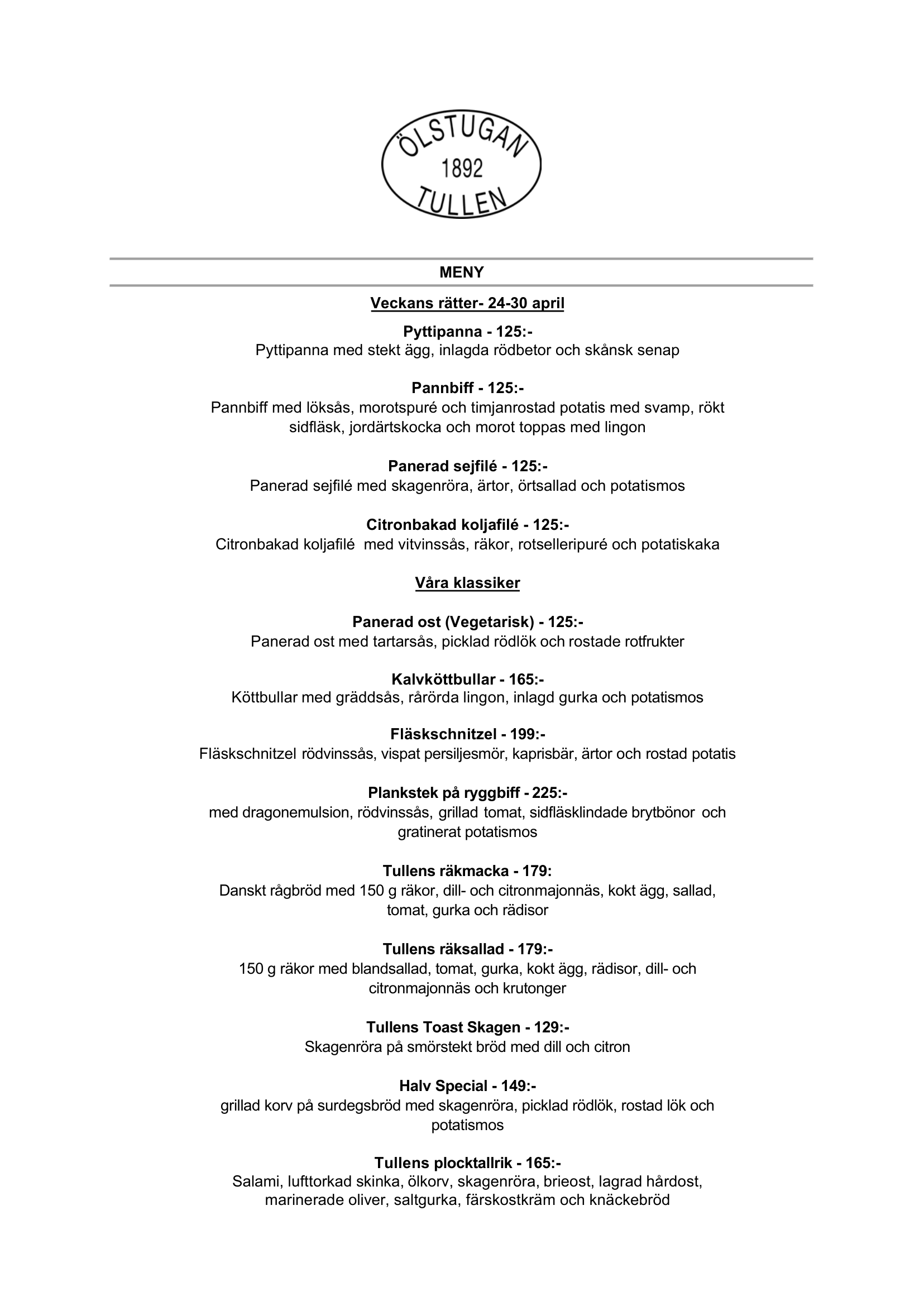 Vi erbjuder vällagad och varierad svensk mat till rimliga priser. För den törstige erbjuds ett stort sortiment av öl och dryck från hela Sverige.