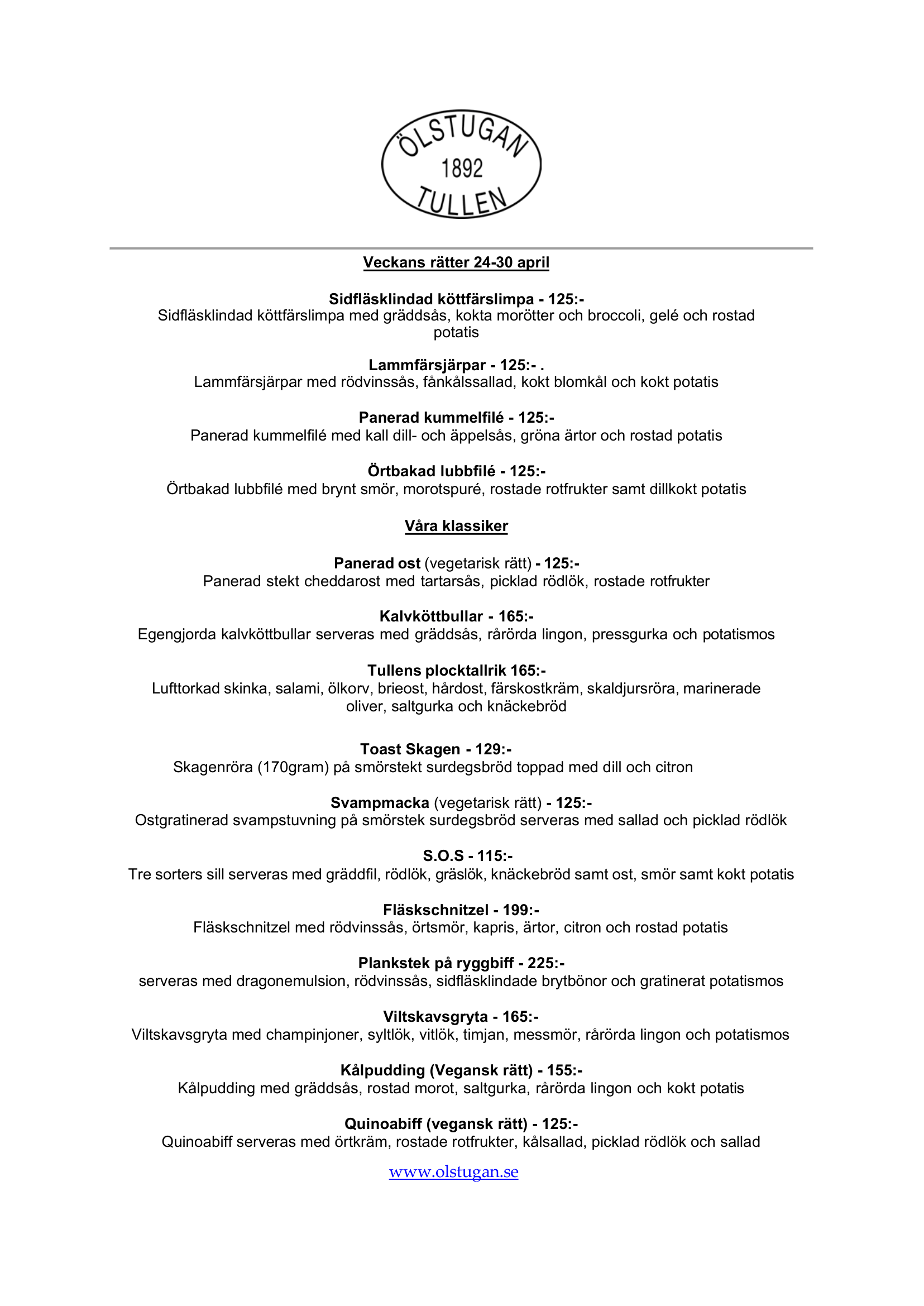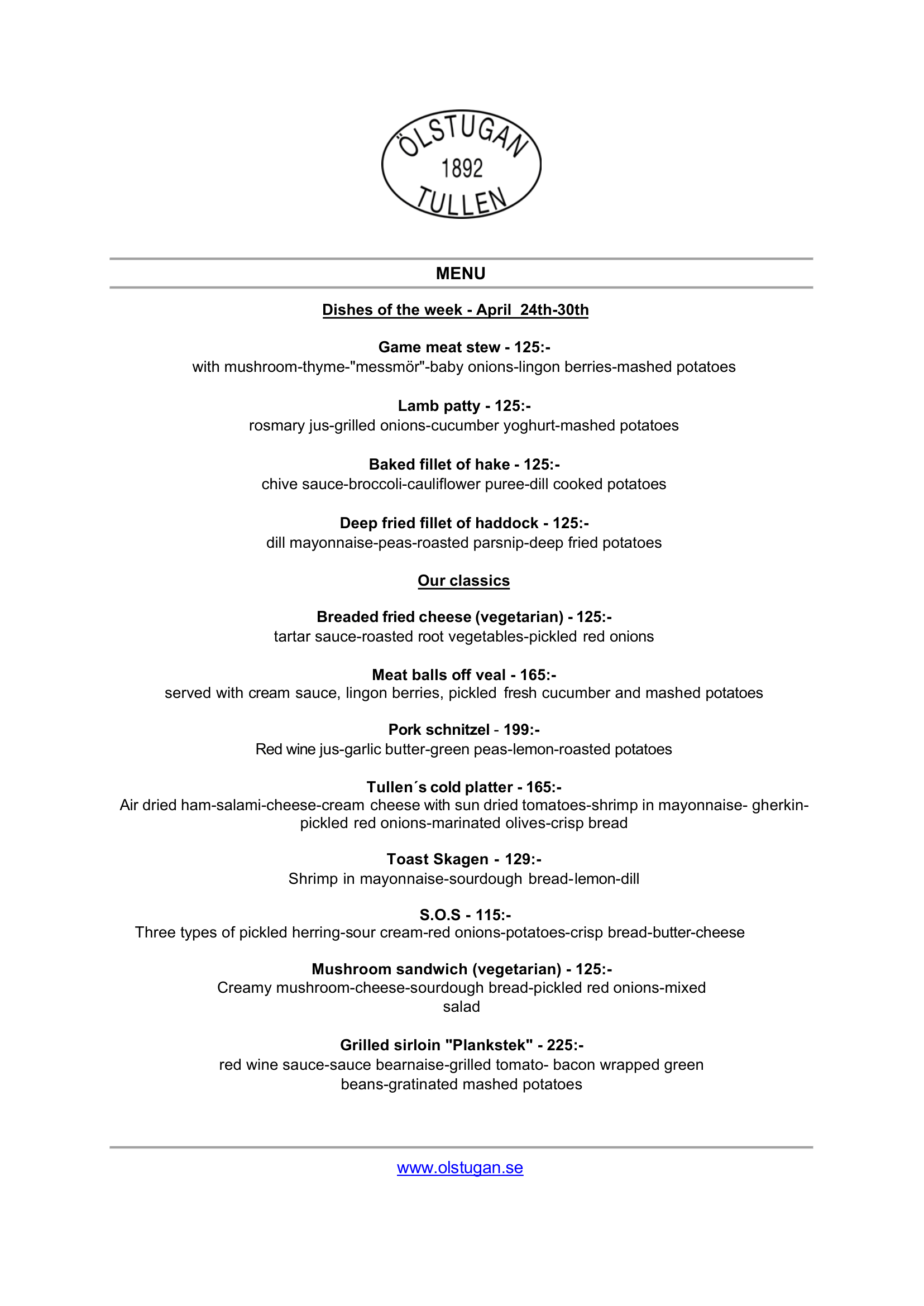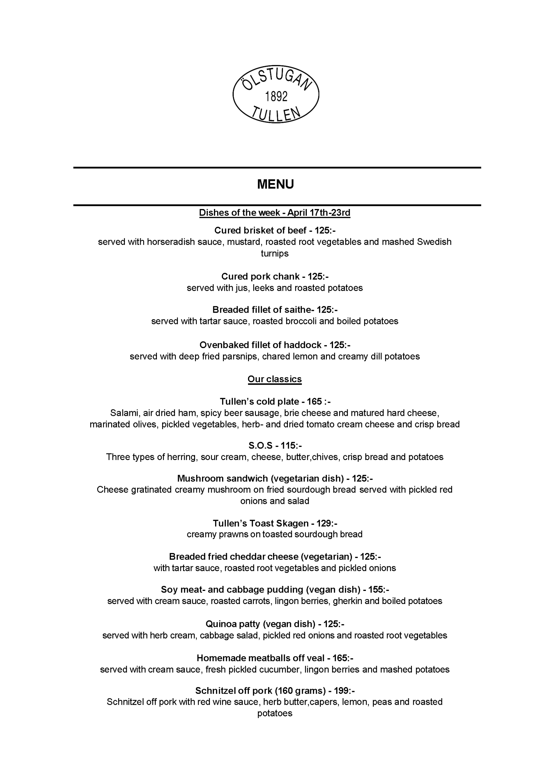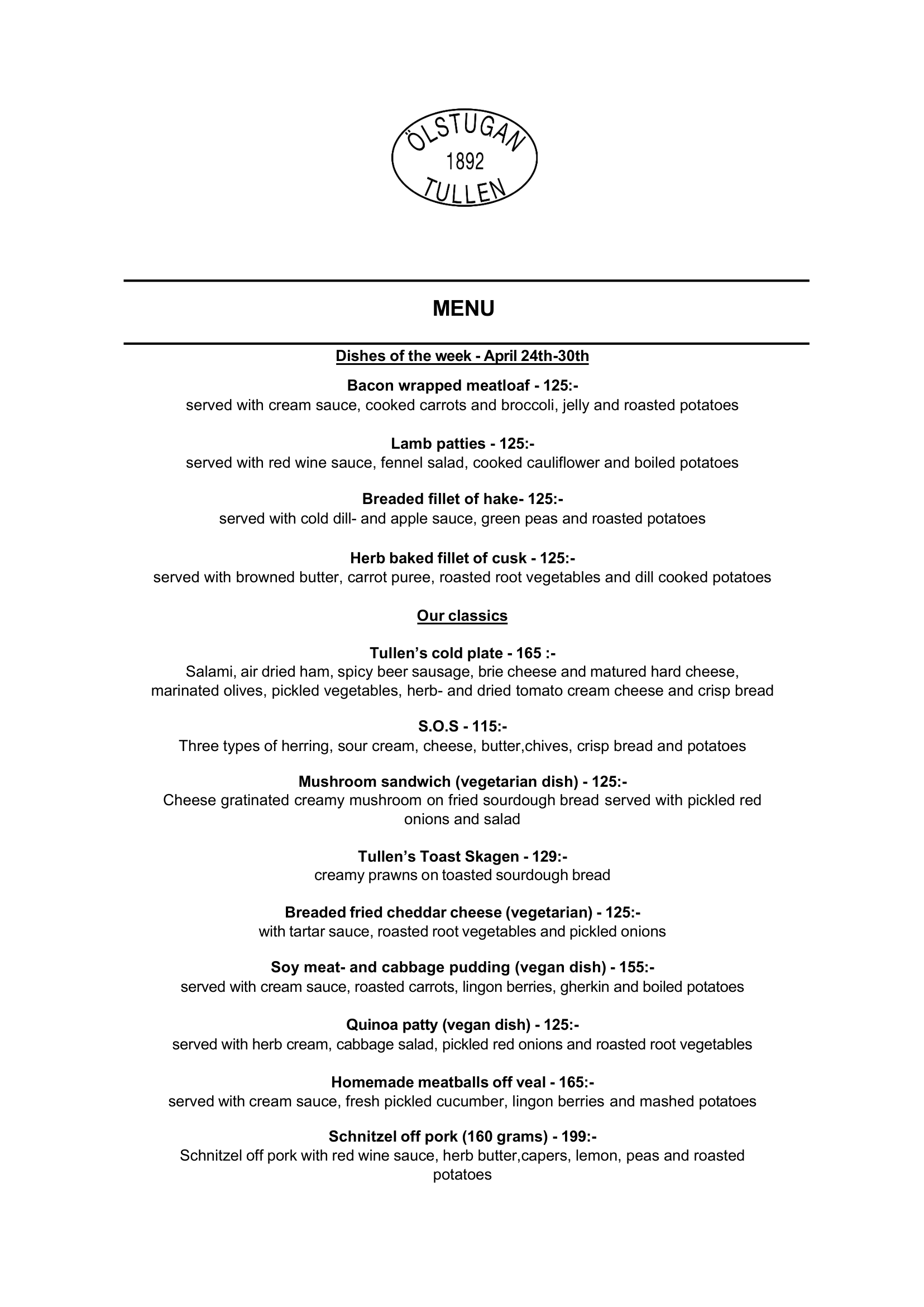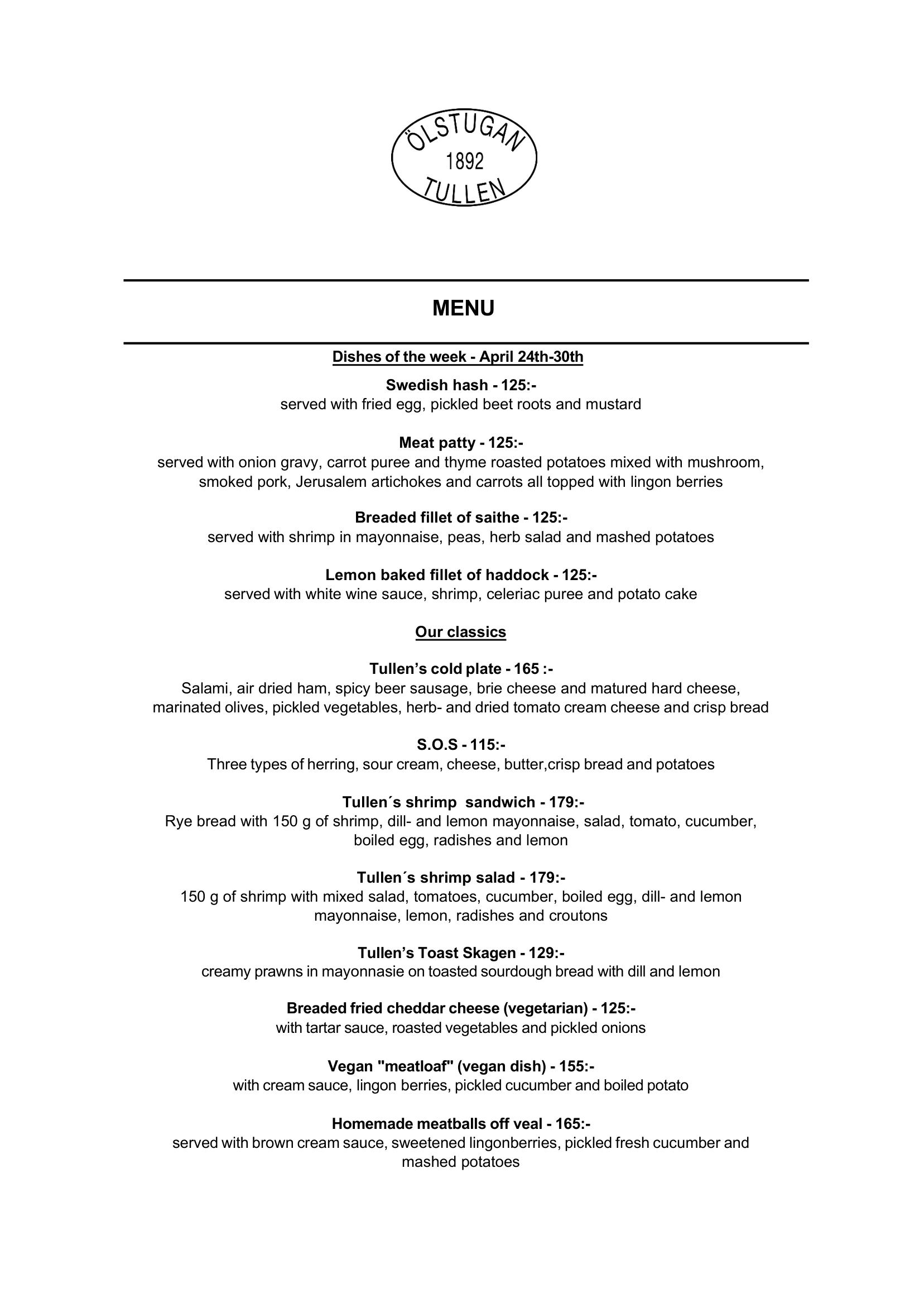 Vi erbjuder vällagad och varierad svensk mat till rimliga priser. För den törstige erbjuds ett stort sortiment av öl och dryck från hela Sverige.