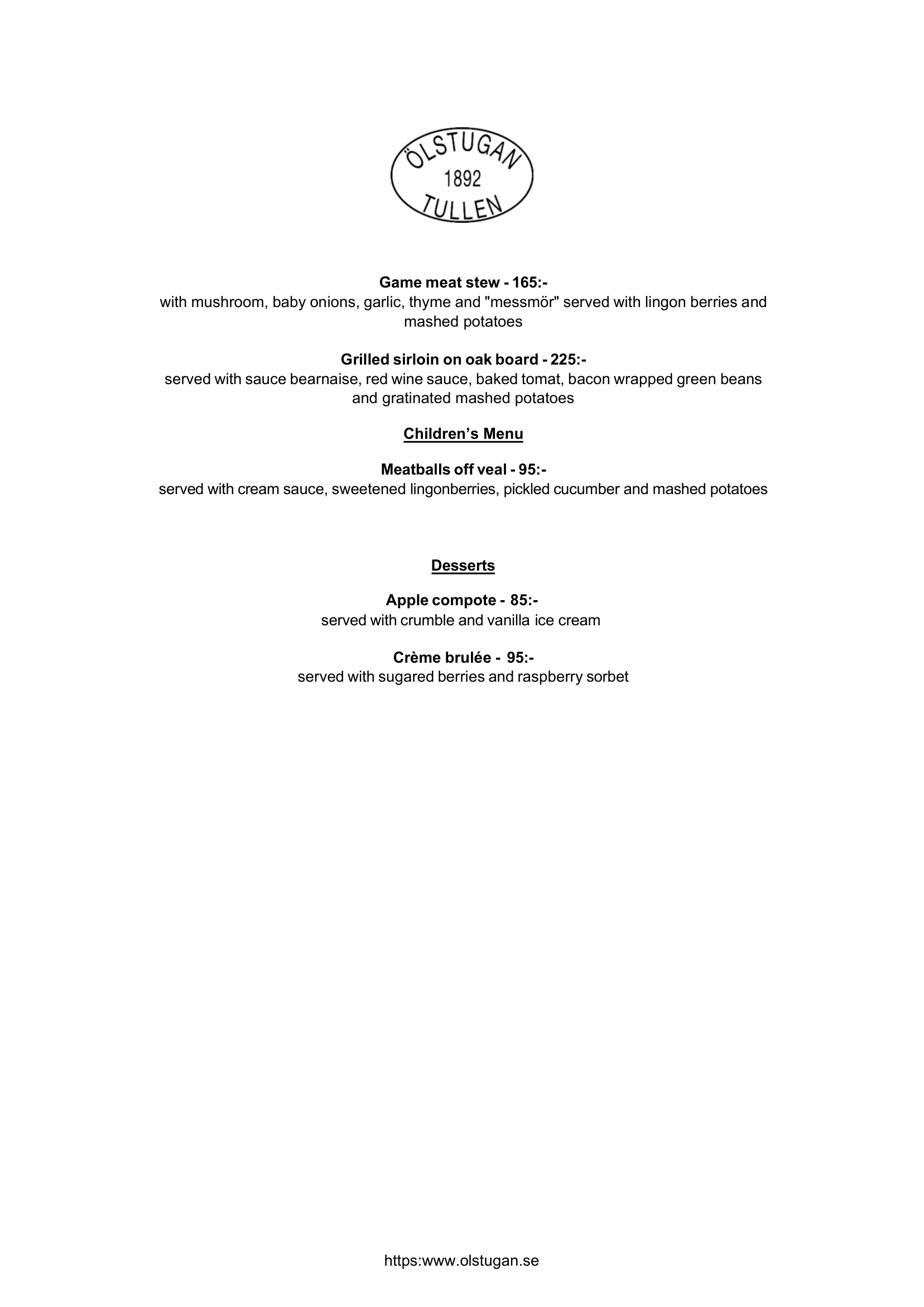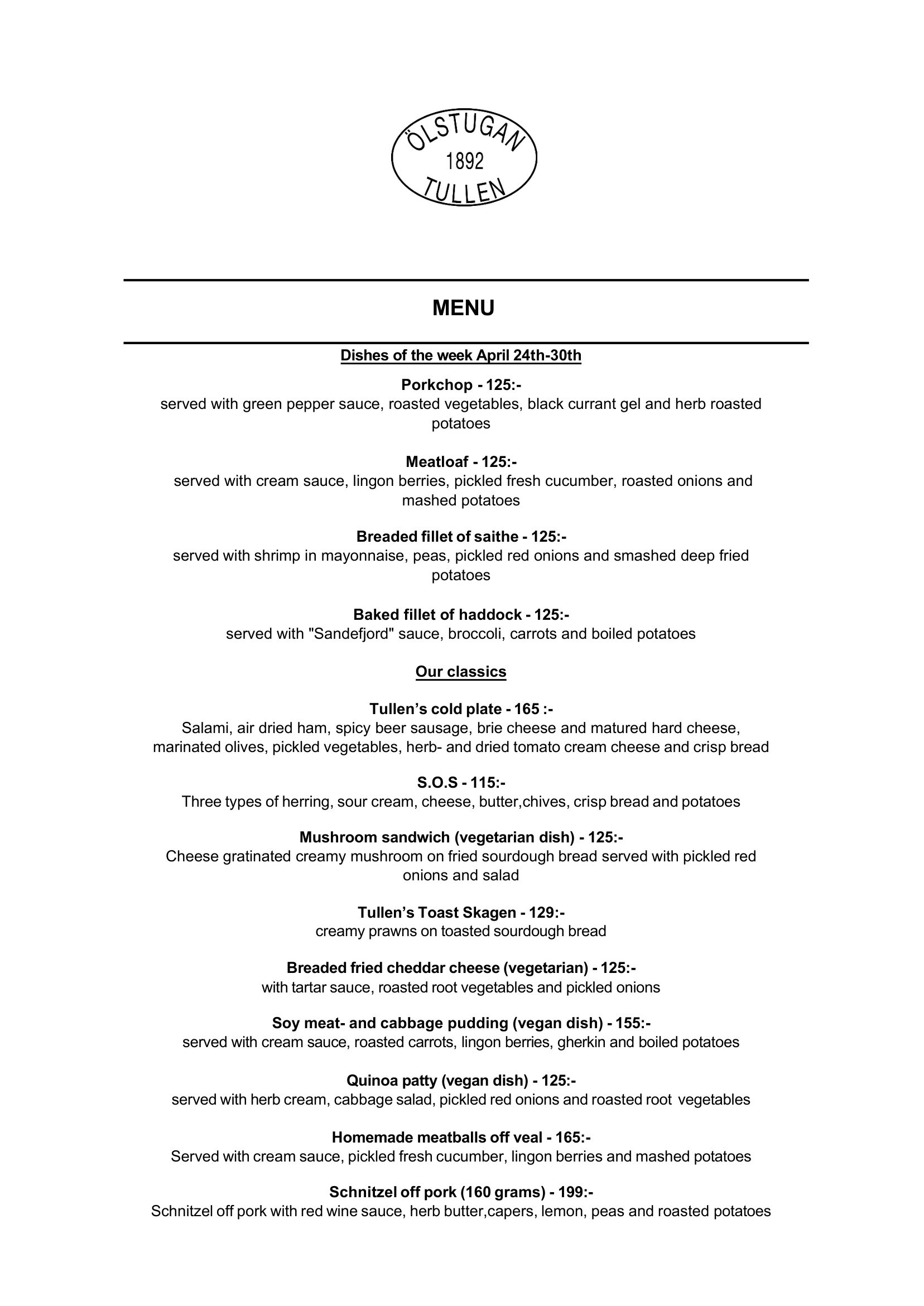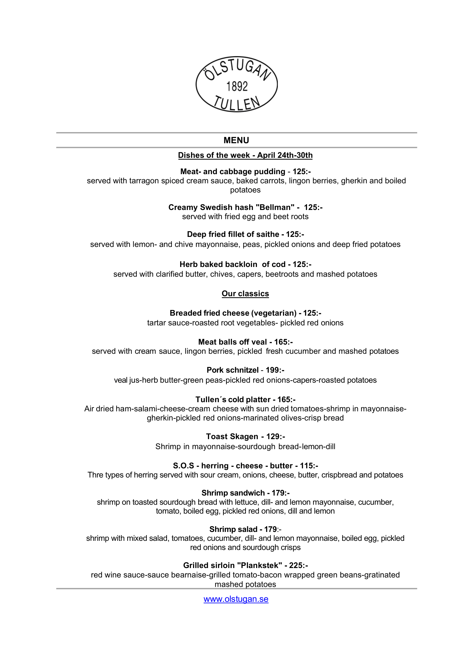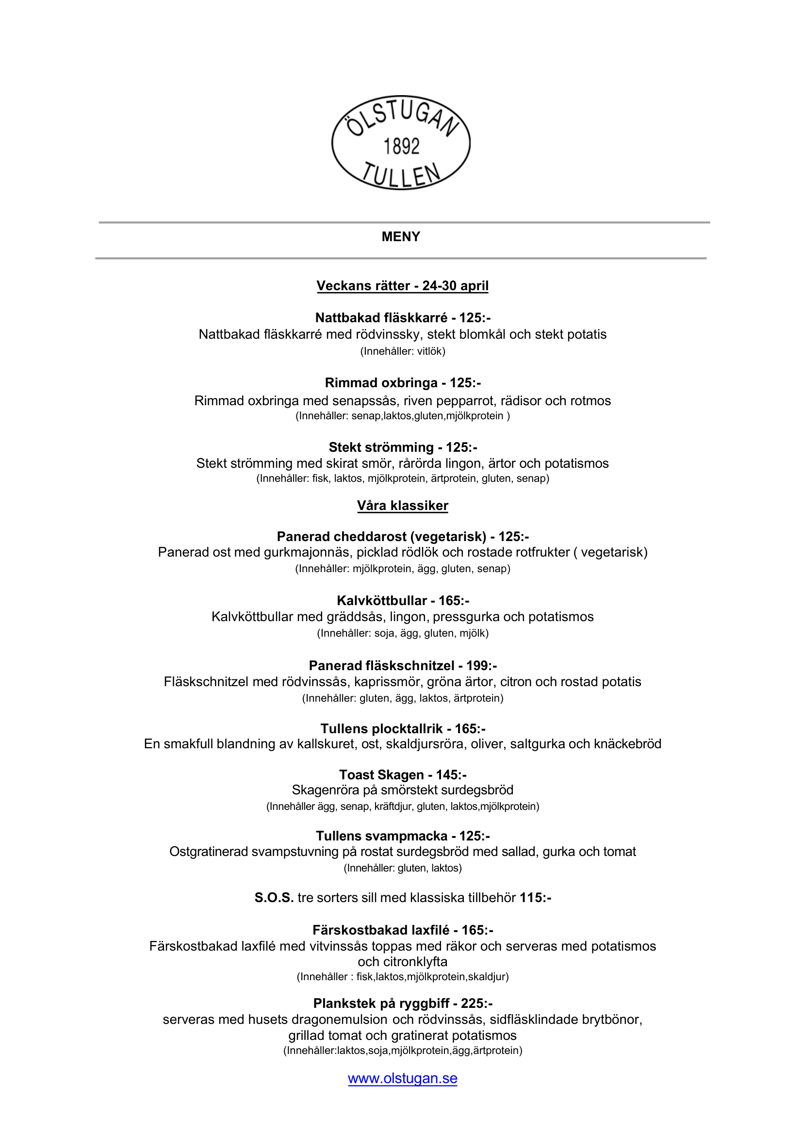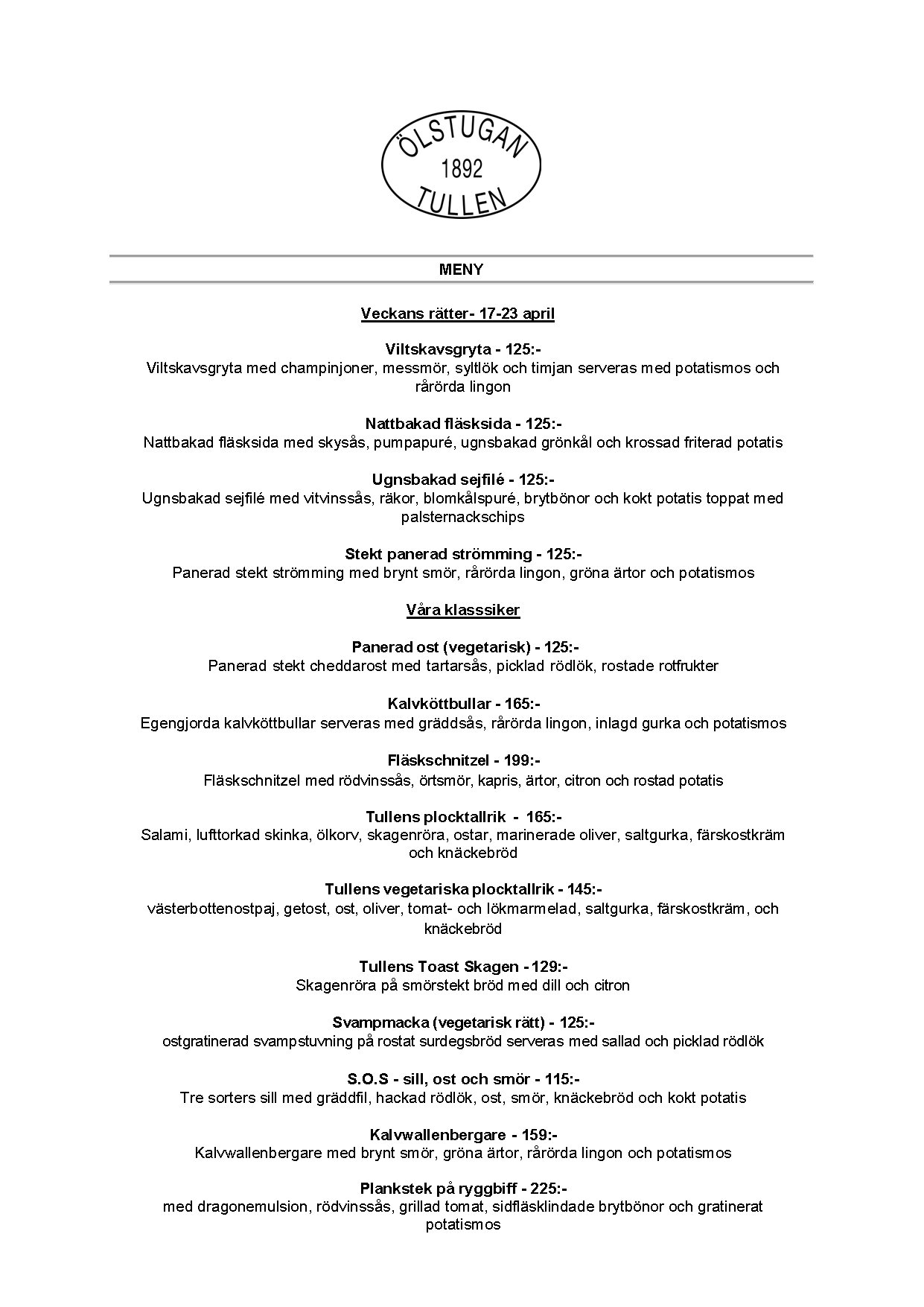 Vi erbjuder vällagad och varierad svensk mat till rimliga priser. För den törstige erbjuds ett stort sortiment av öl och dryck från hela Sverige.