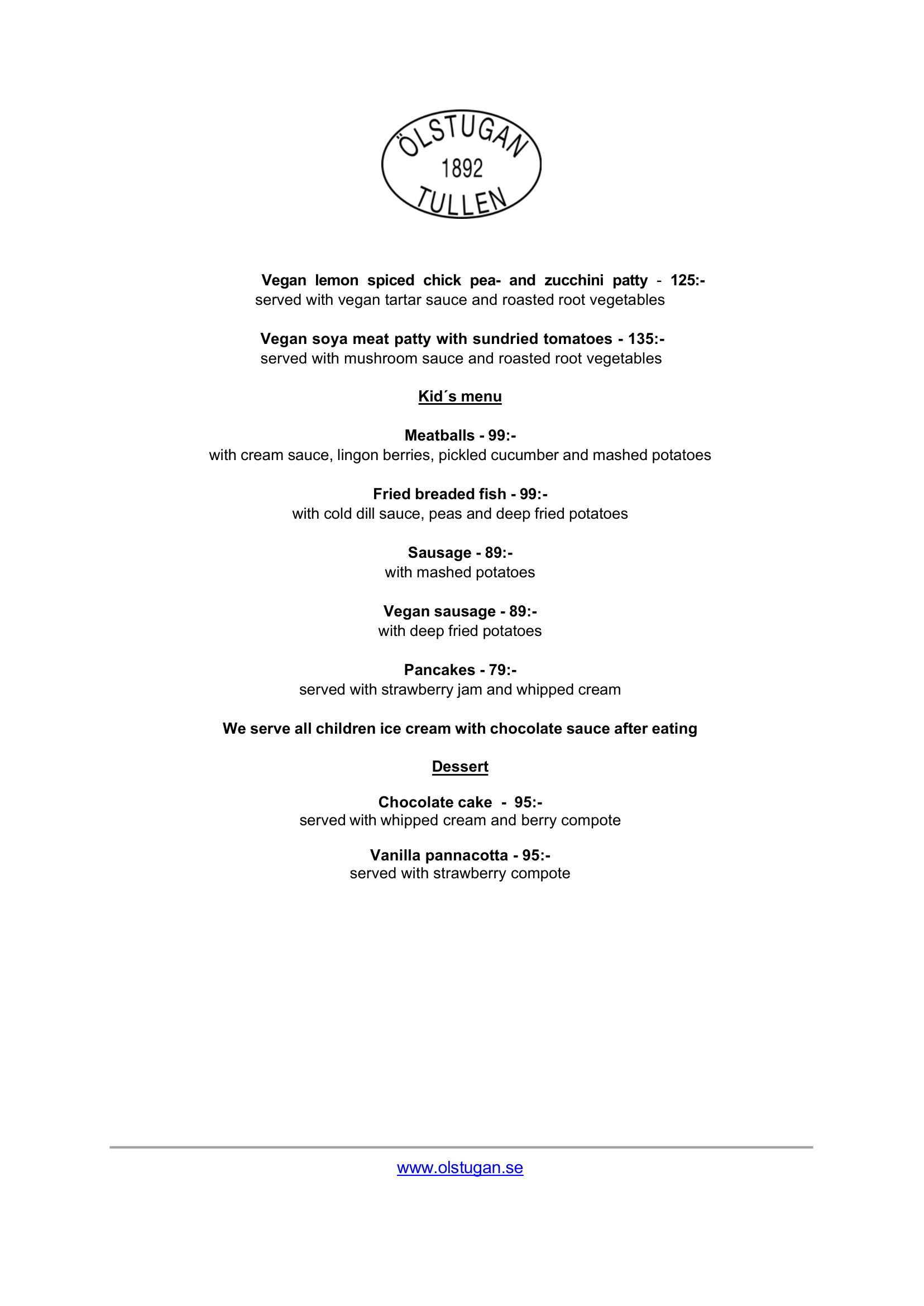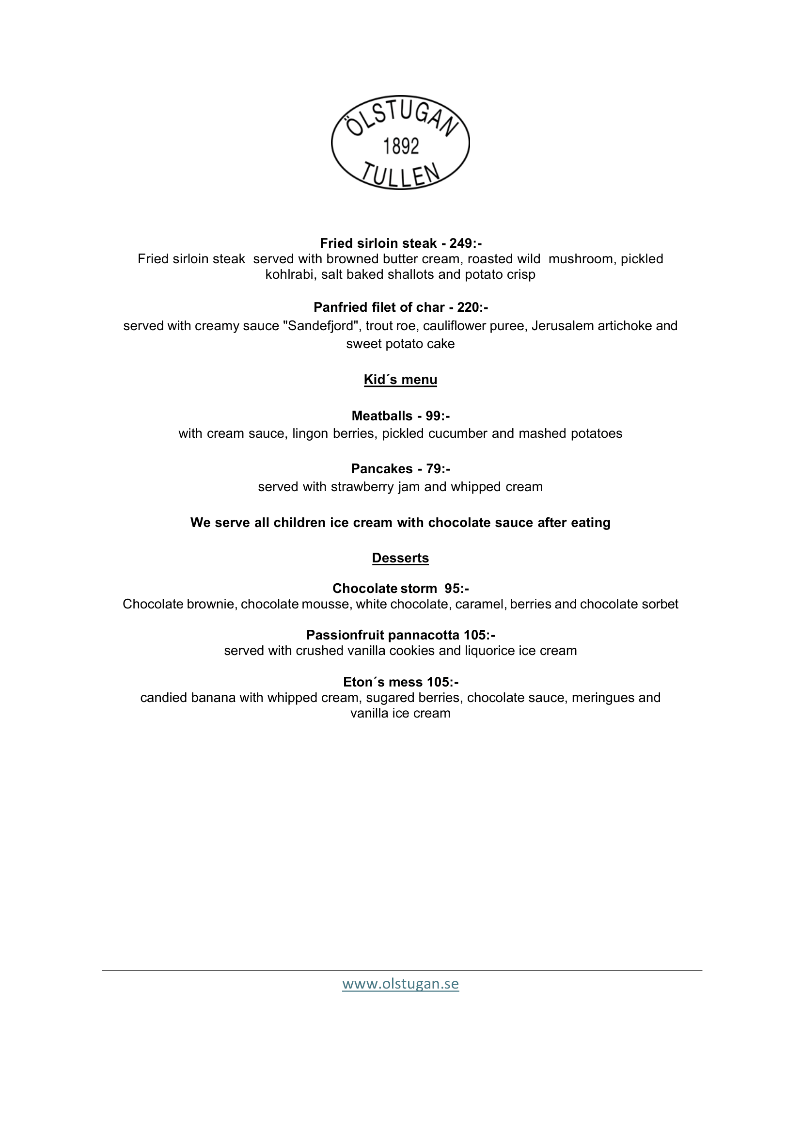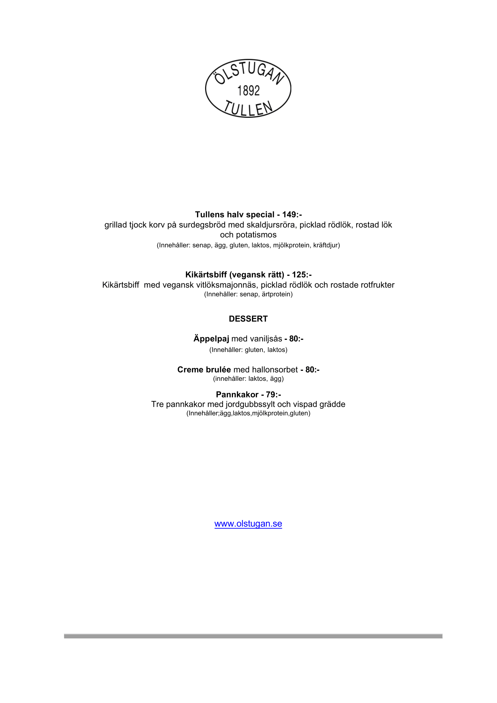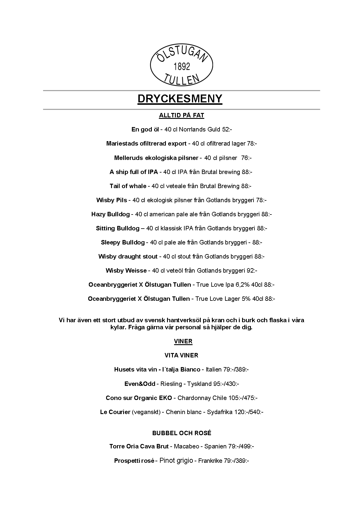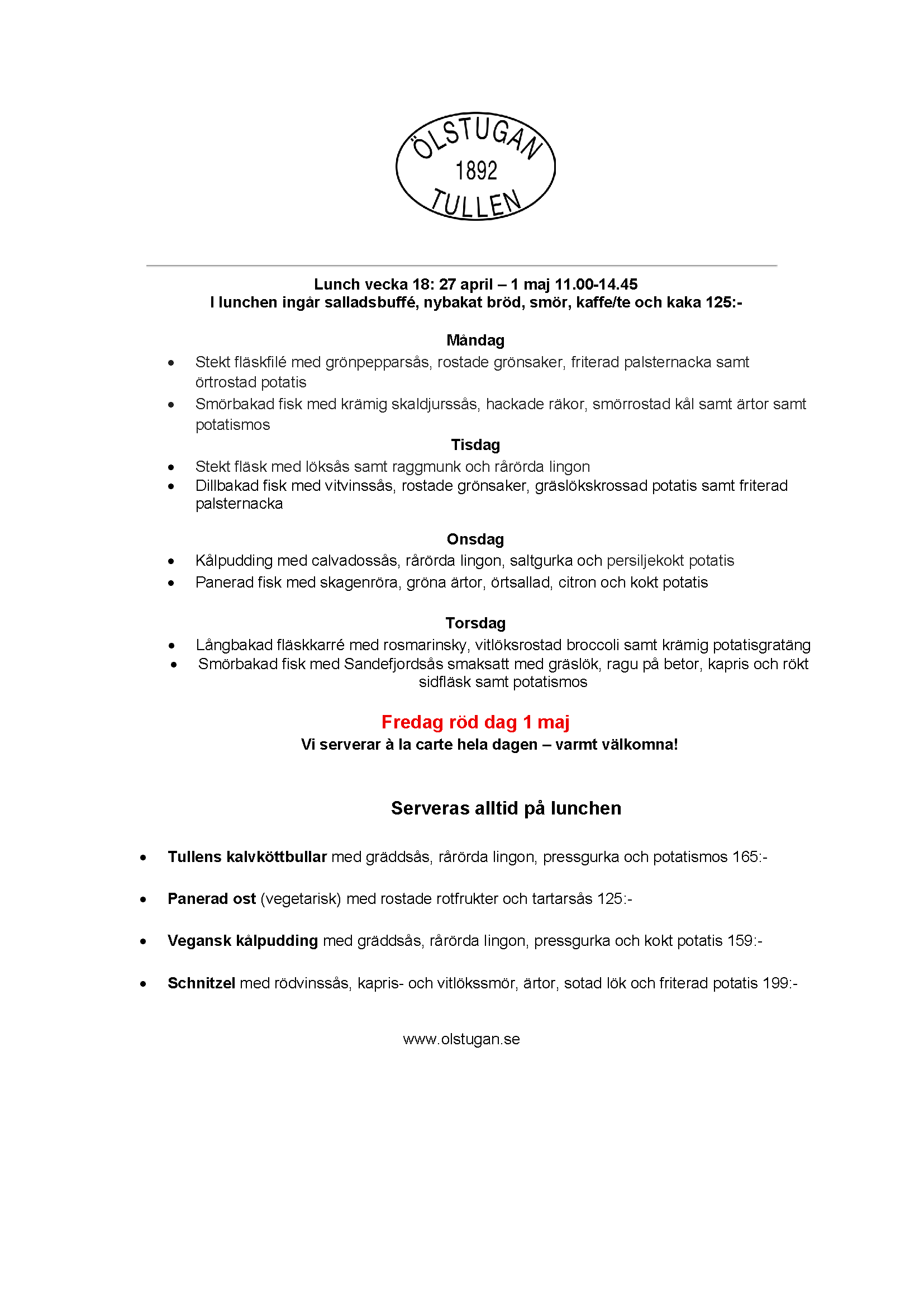 Vi erbjuder vällagad och varierad svensk mat till rimliga priser. För den törstige erbjuds ett stort sortiment av öl och dryck från hela Sverige.