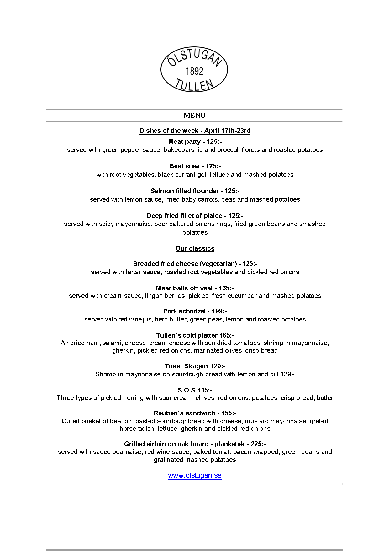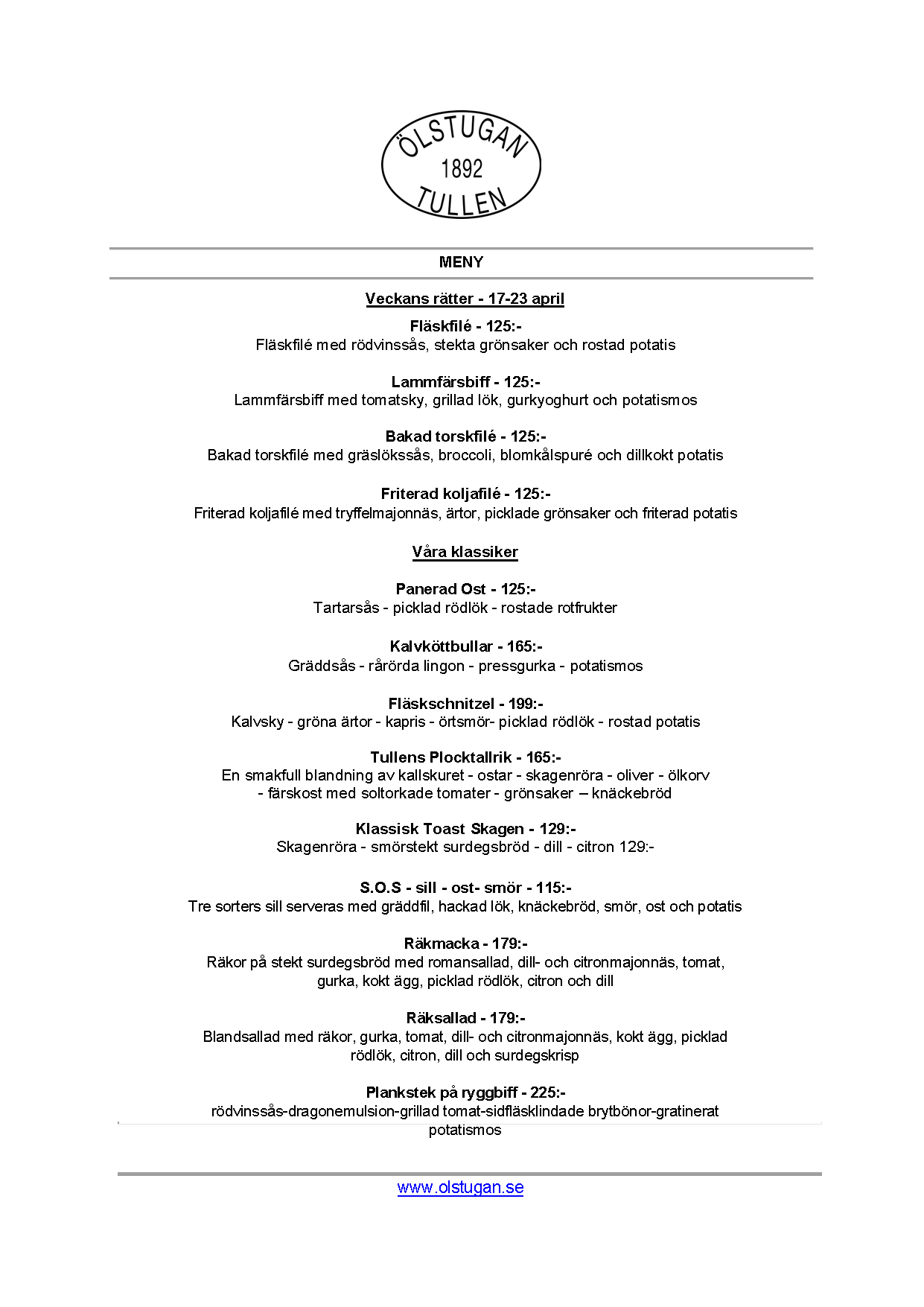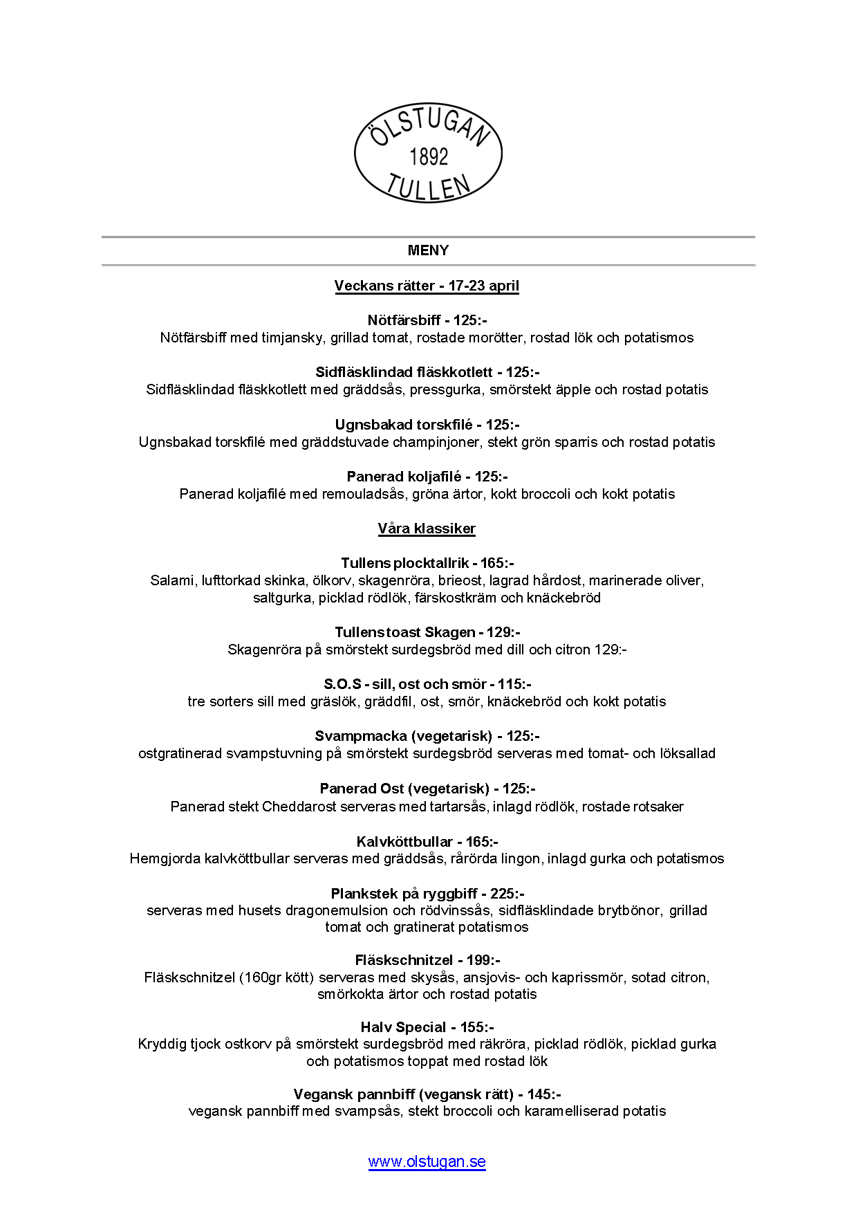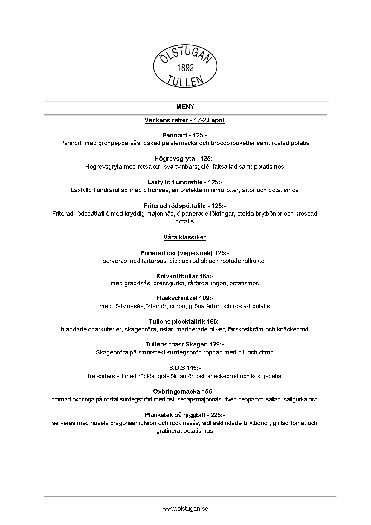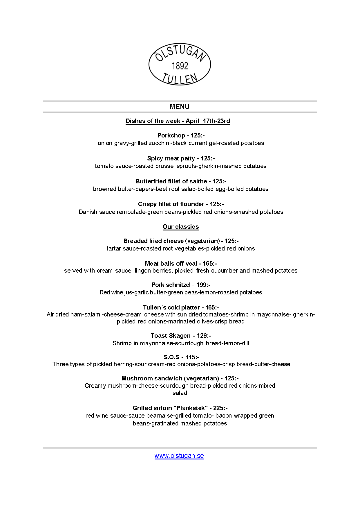 Vi erbjuder vällagad och varierad svensk mat till rimliga priser. För den törstige erbjuds ett stort sortiment av öl och dryck från hela Sverige.