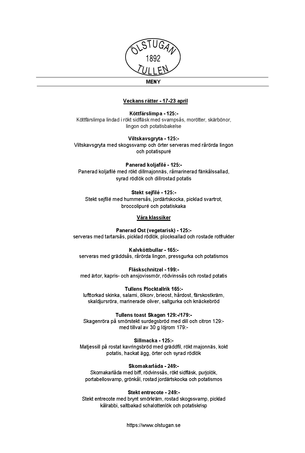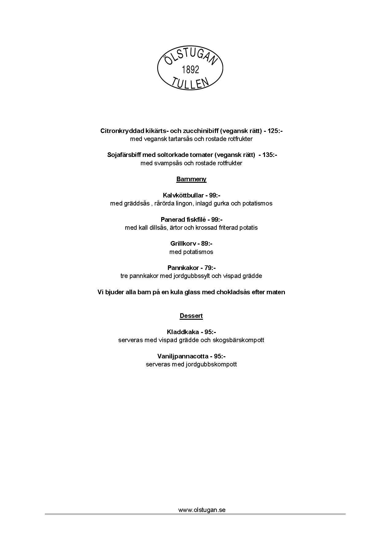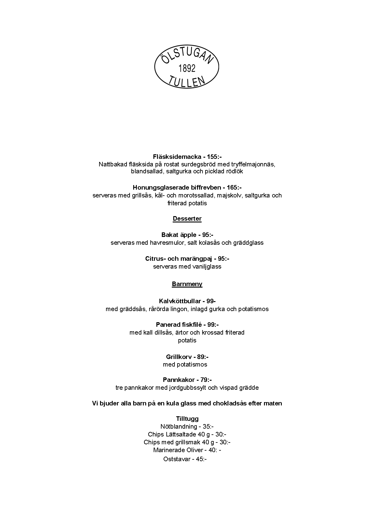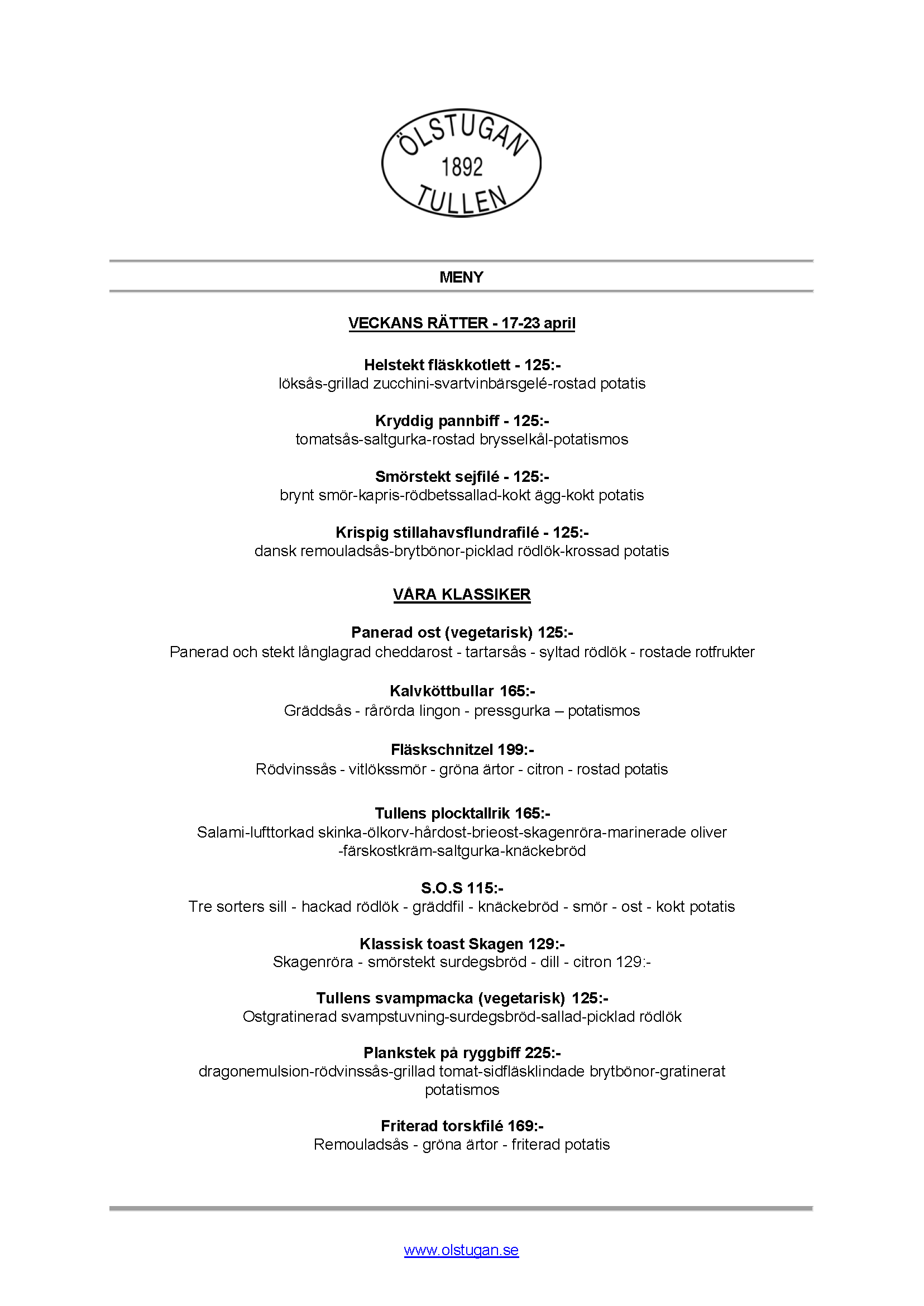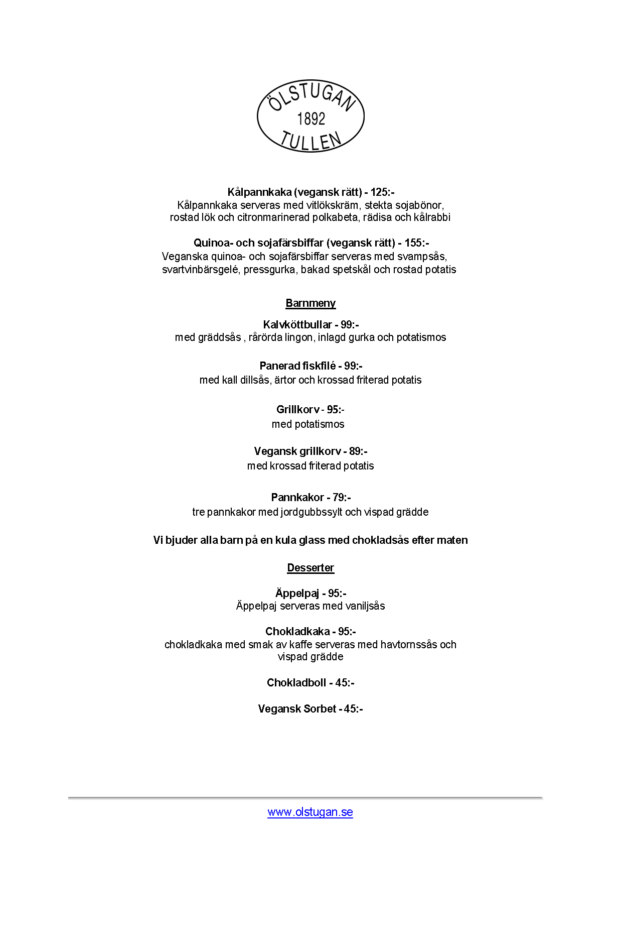 Vi erbjuder vällagad och varierad svensk mat till rimliga priser. För den törstige erbjuds ett stort sortiment av öl och dryck från hela Sverige.