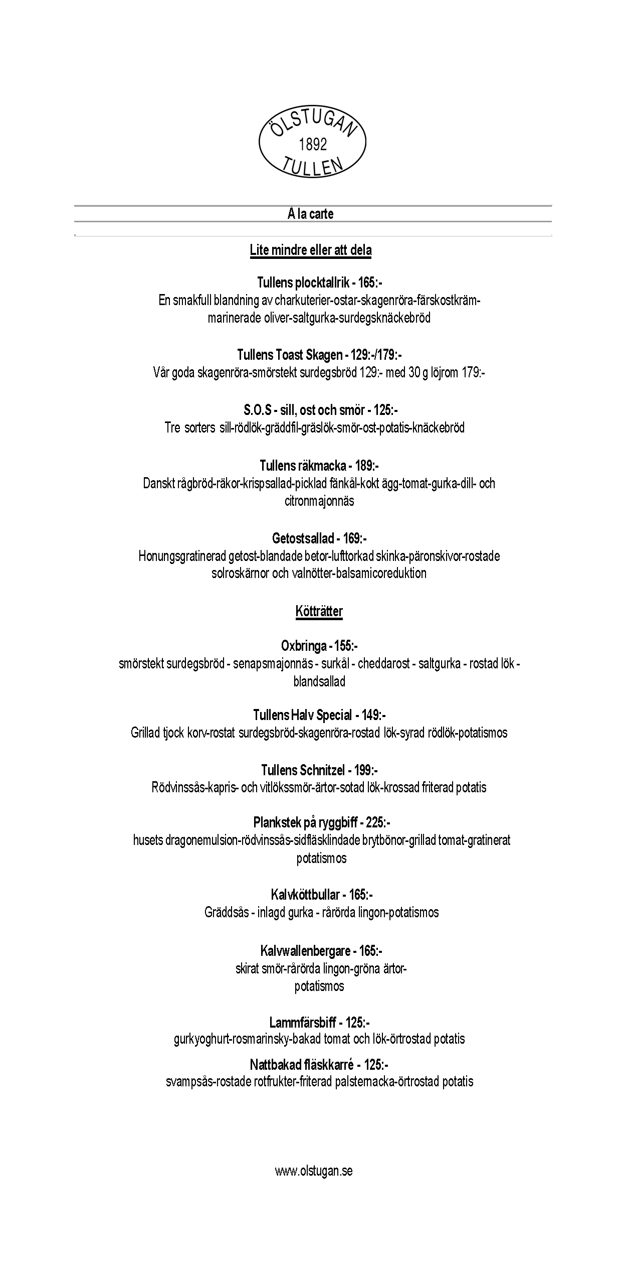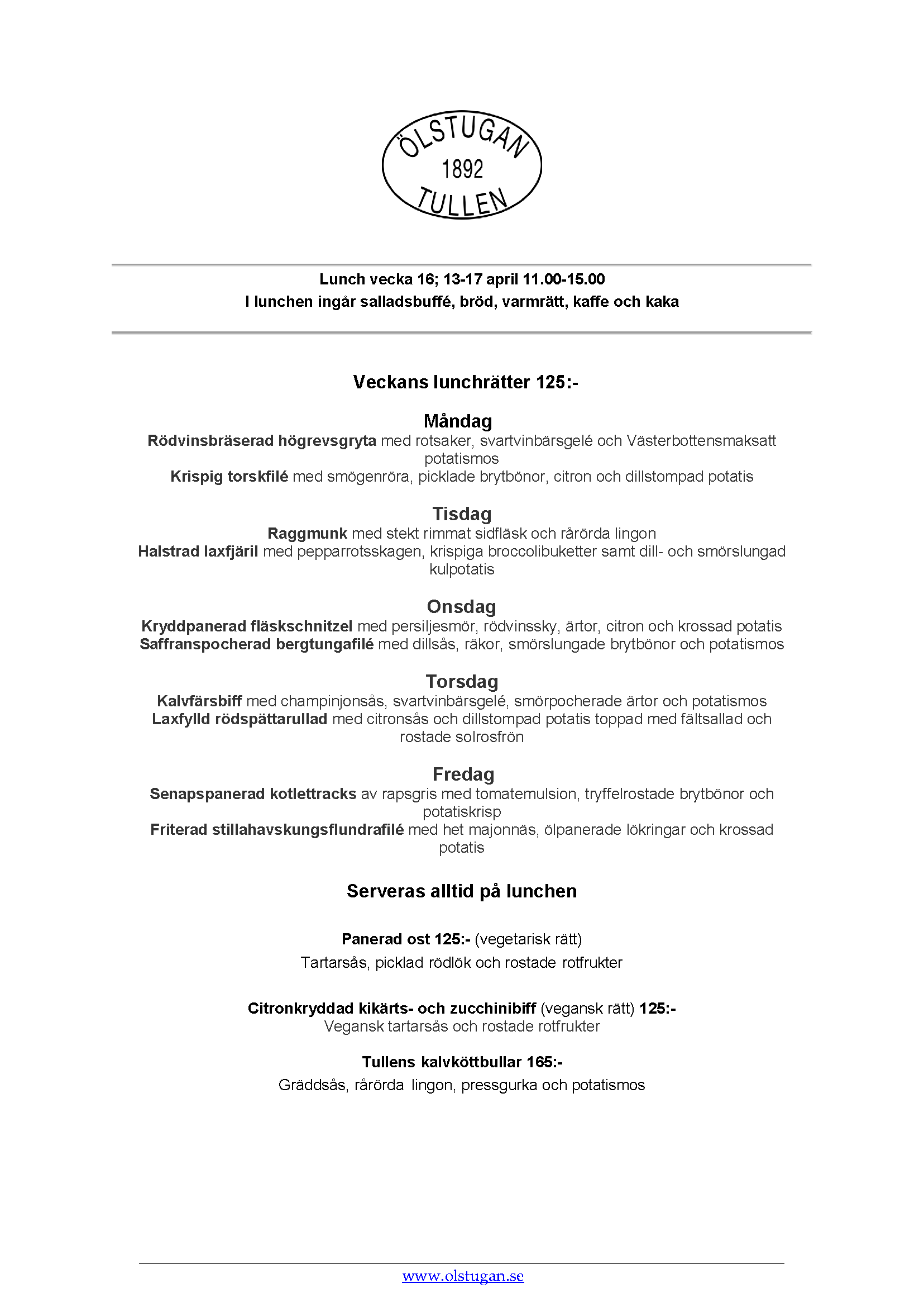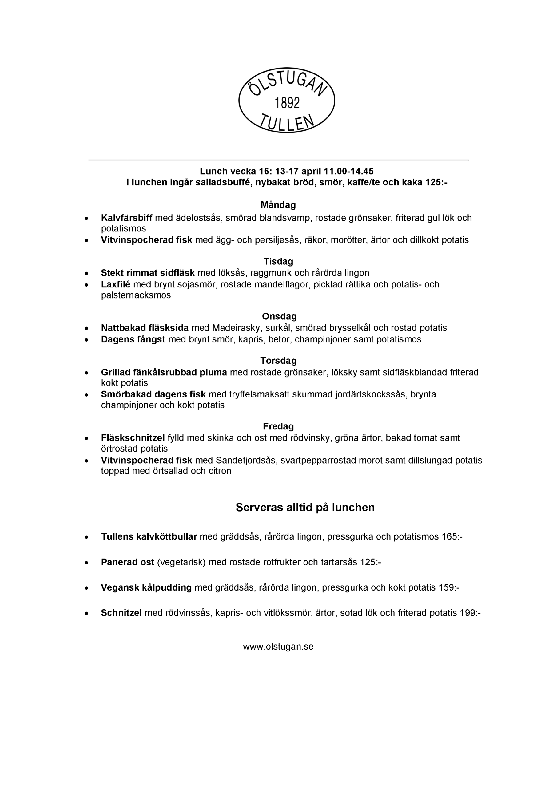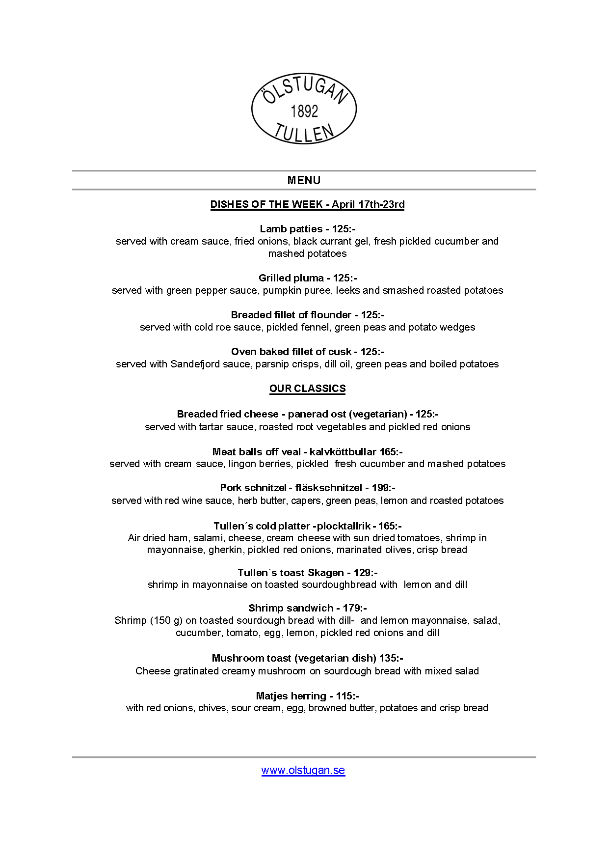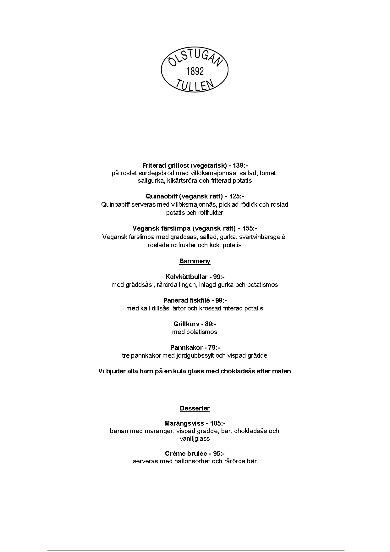 Vi erbjuder vällagad och varierad svensk mat till rimliga priser. För den törstige erbjuds ett stort sortiment av öl och dryck från hela Sverige.