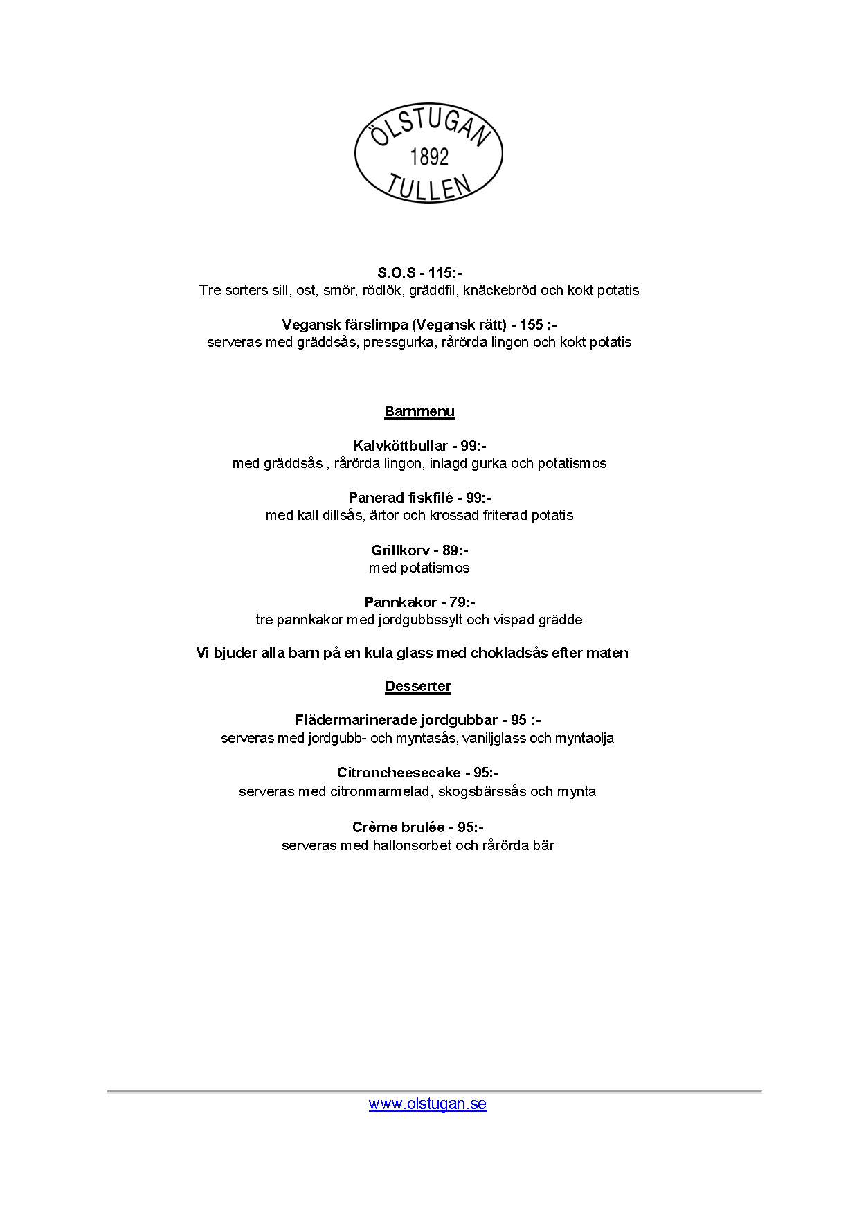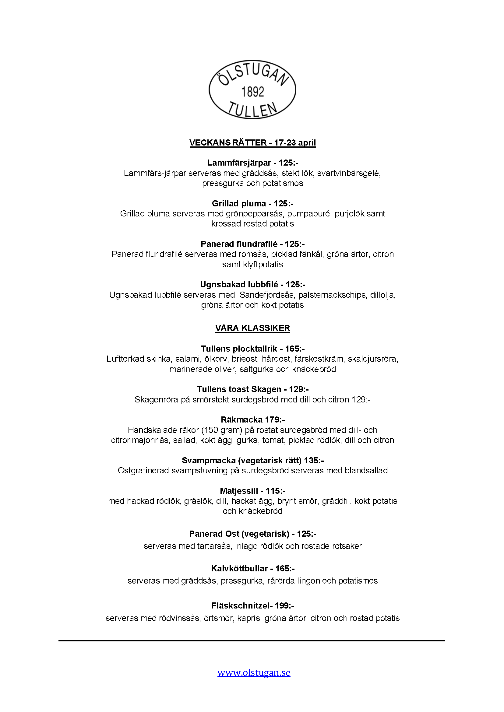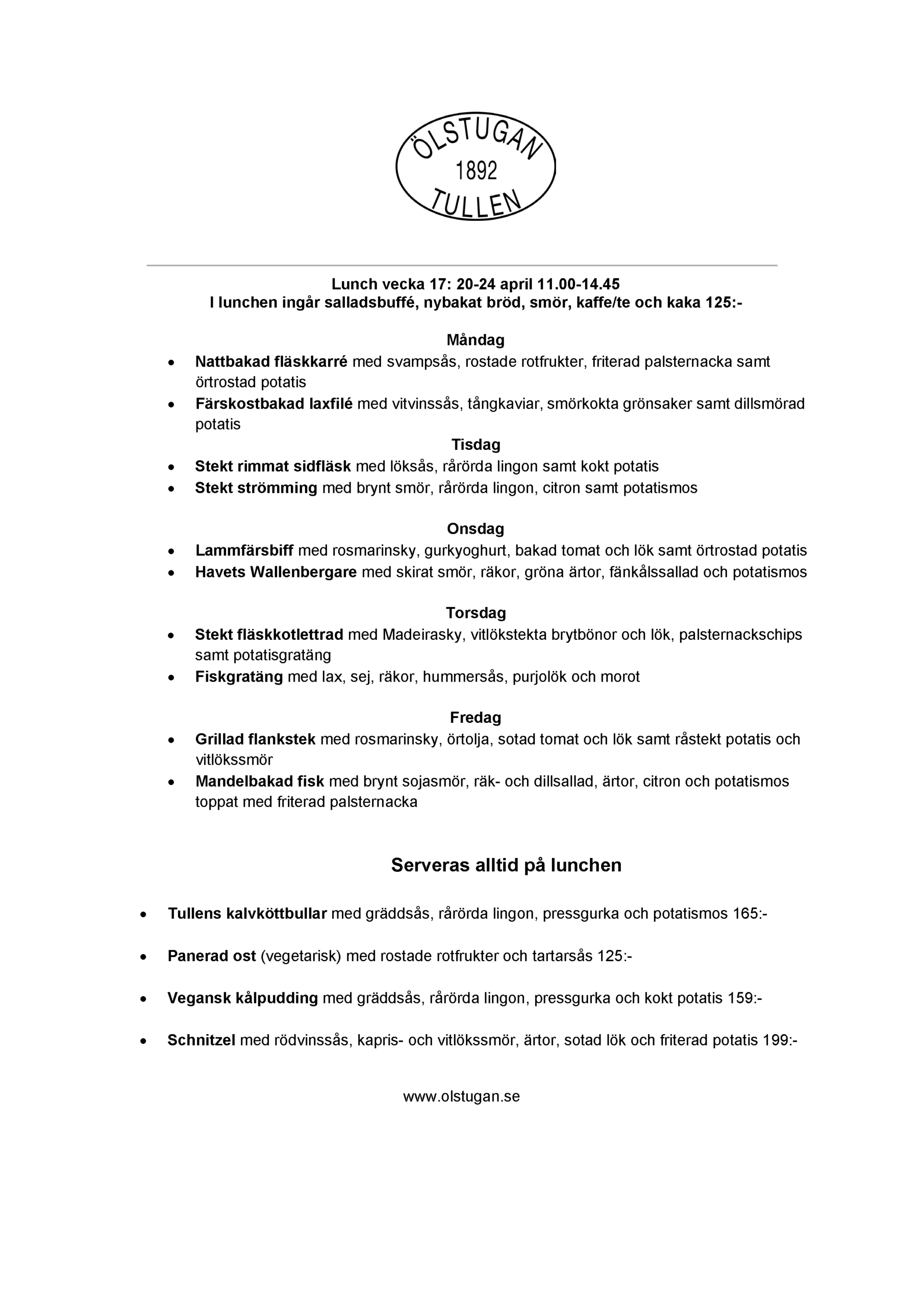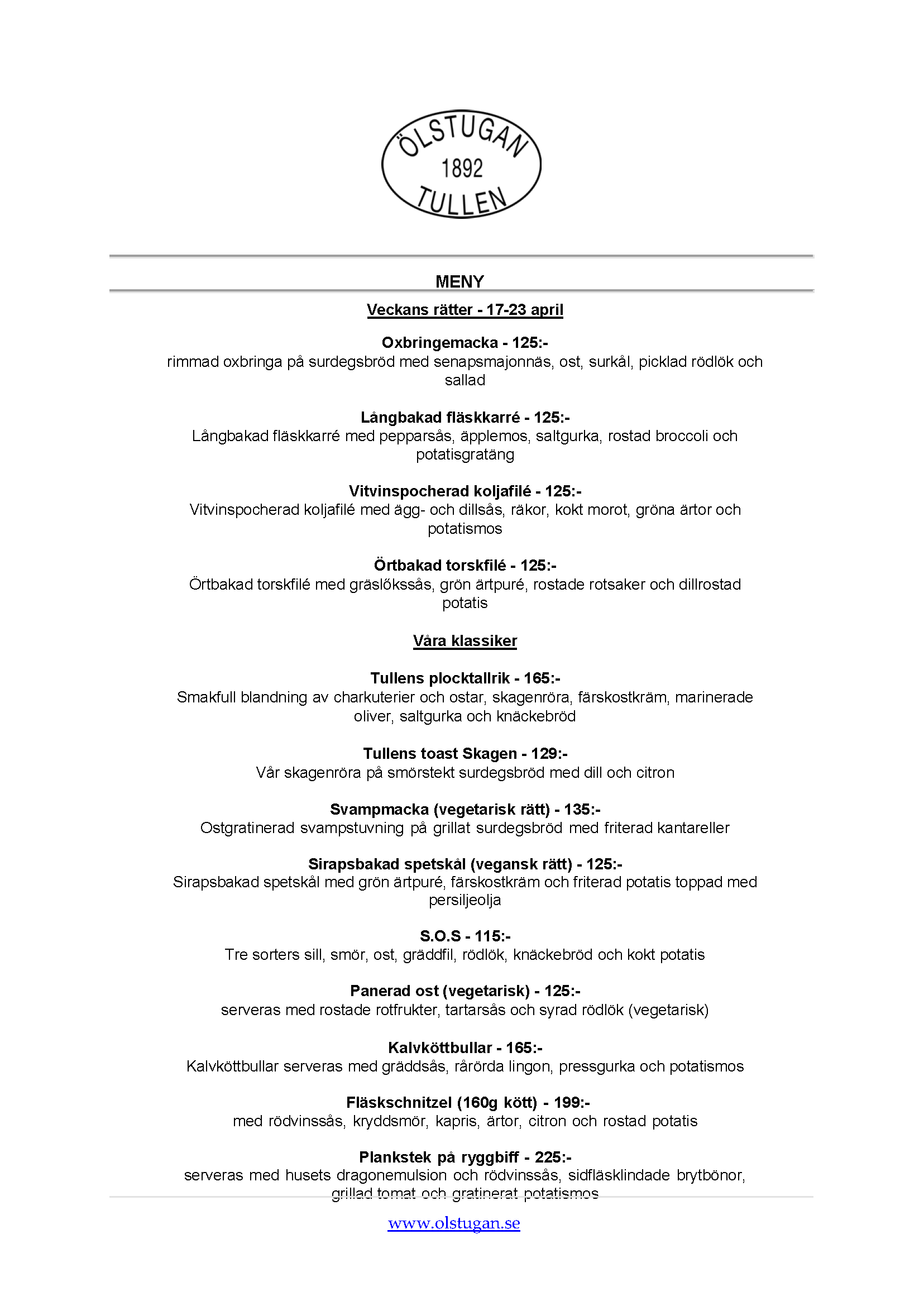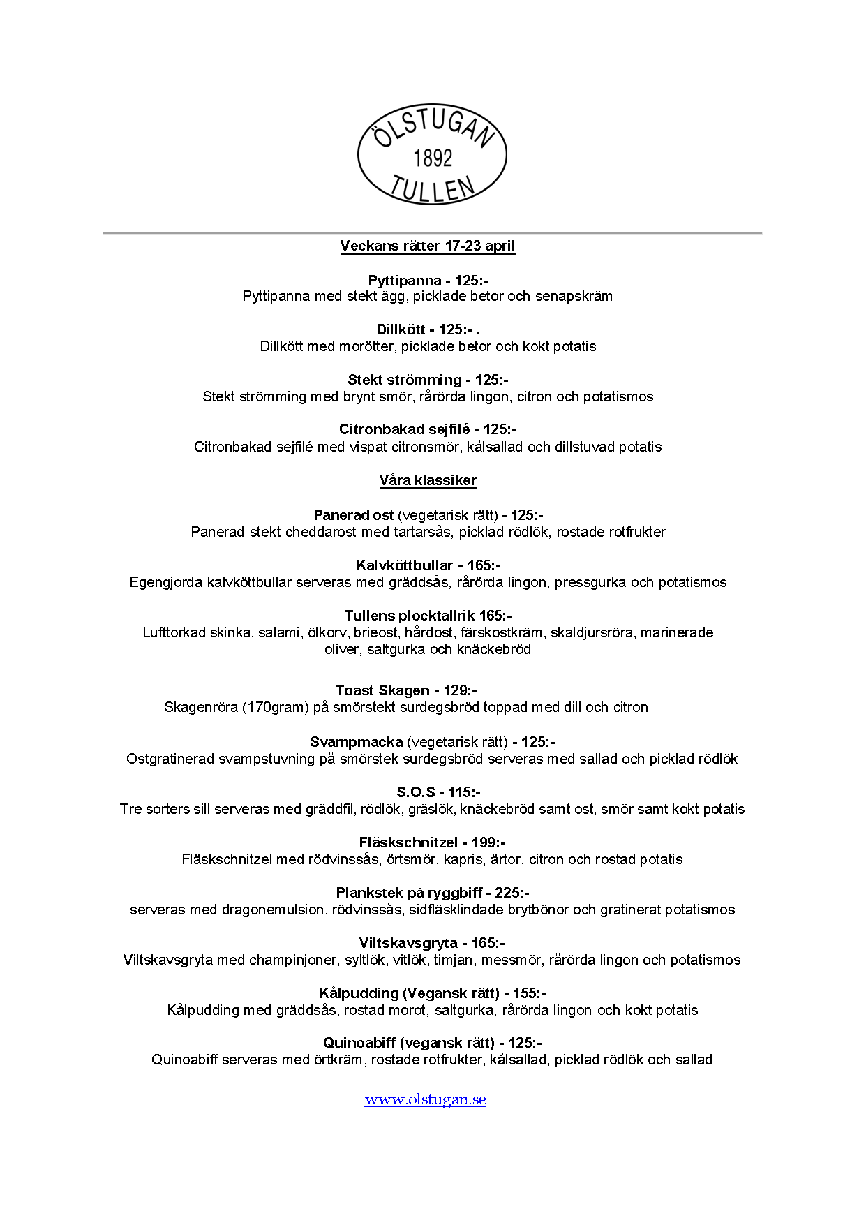 Vi erbjuder vällagad och varierad svensk mat till rimliga priser. För den törstige erbjuds ett stort sortiment av öl och dryck från hela Sverige.