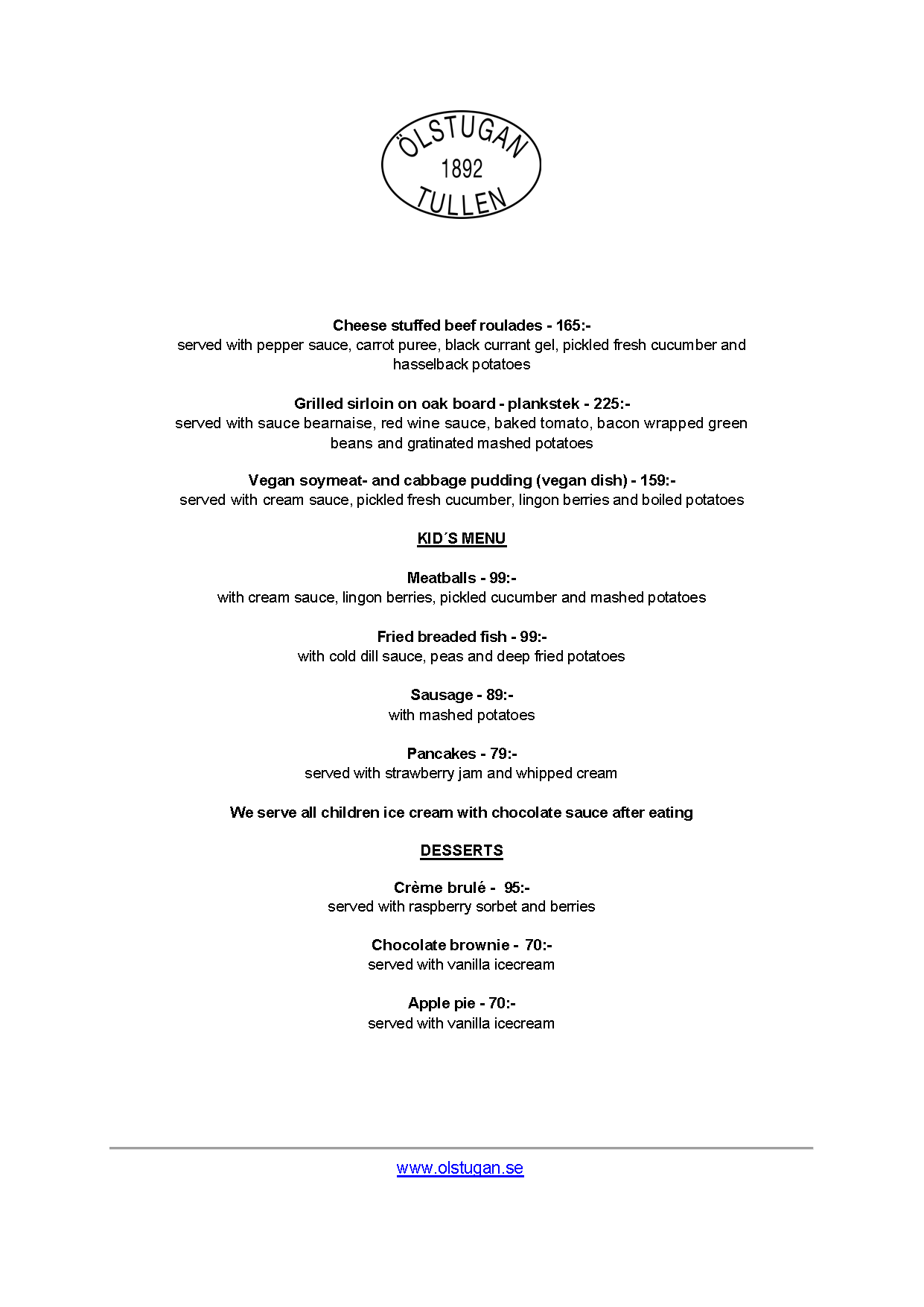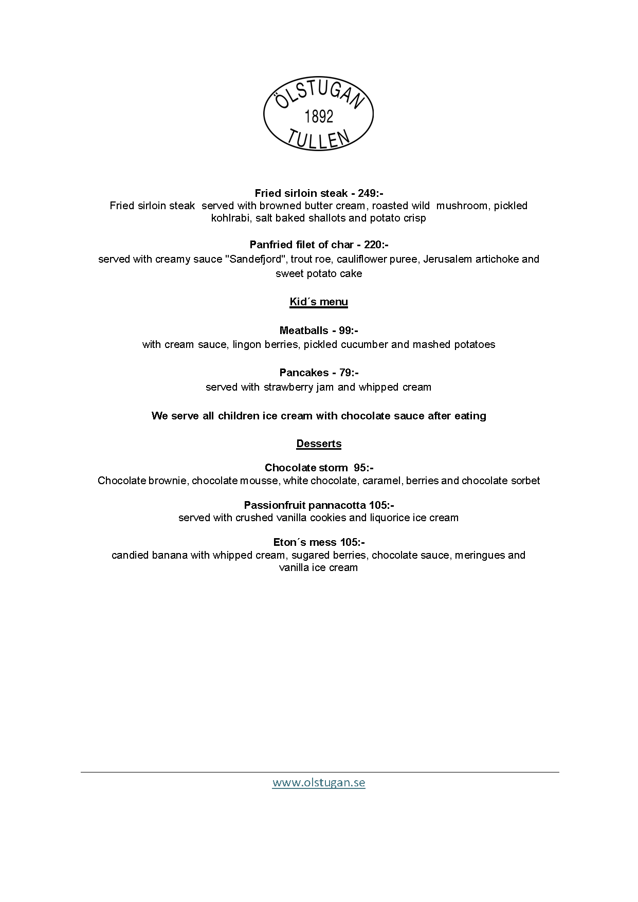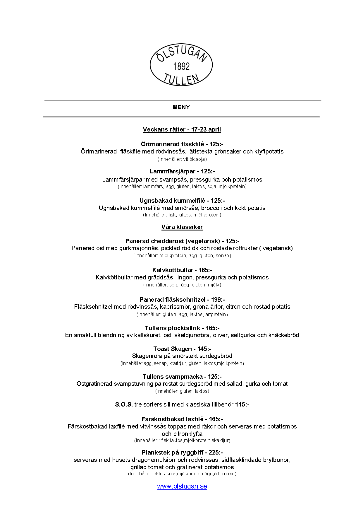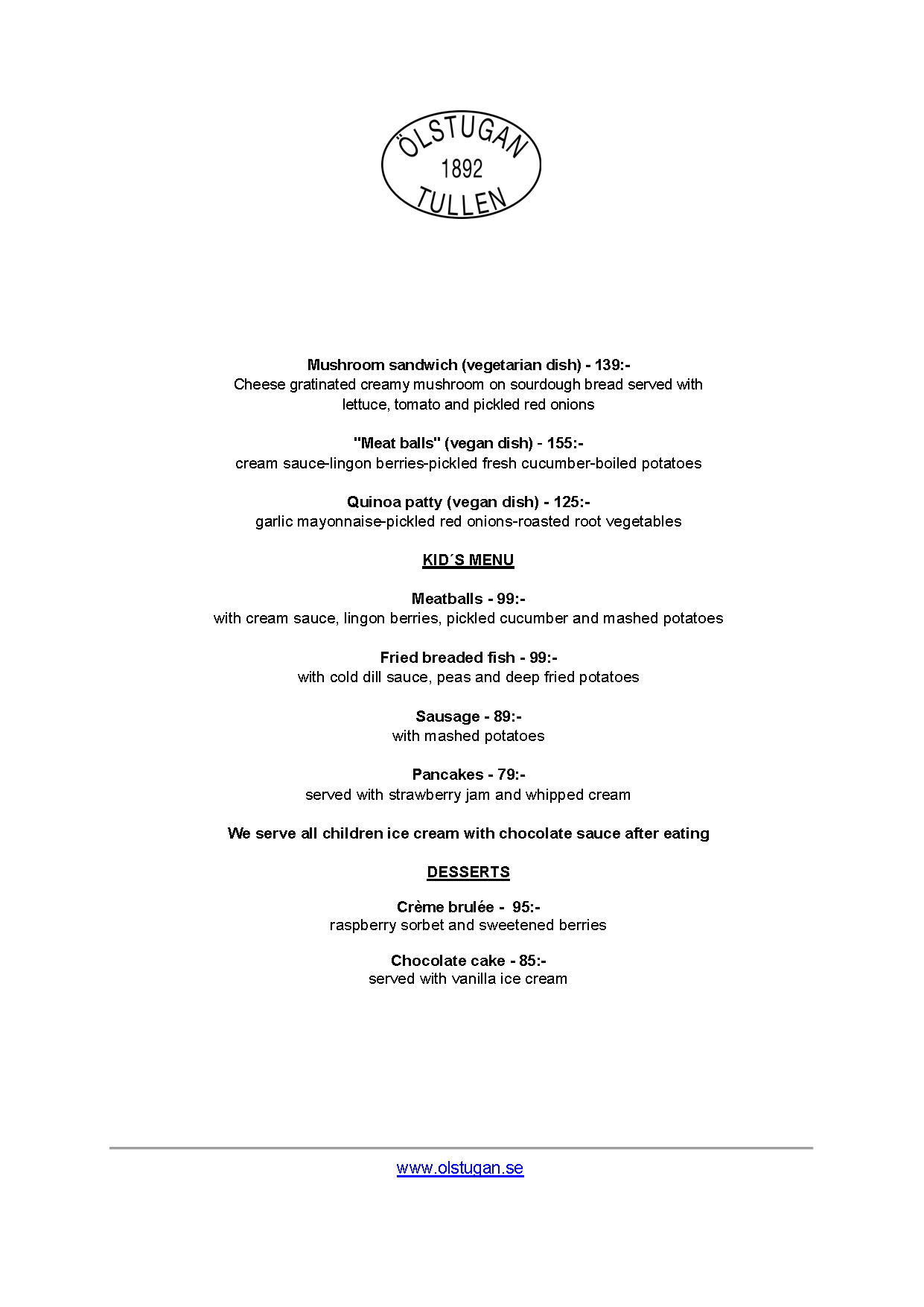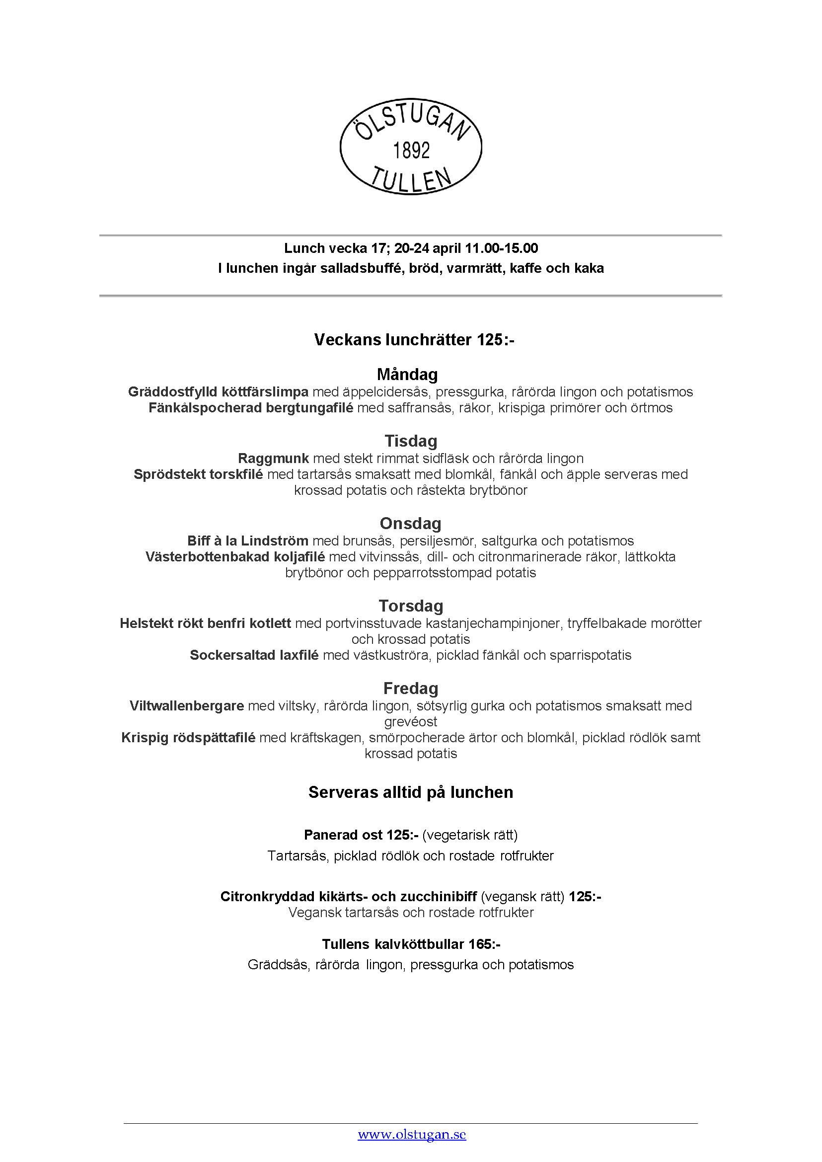 Vi erbjuder vällagad och varierad svensk mat till rimliga priser. För den törstige erbjuds ett stort sortiment av öl och dryck från hela Sverige.