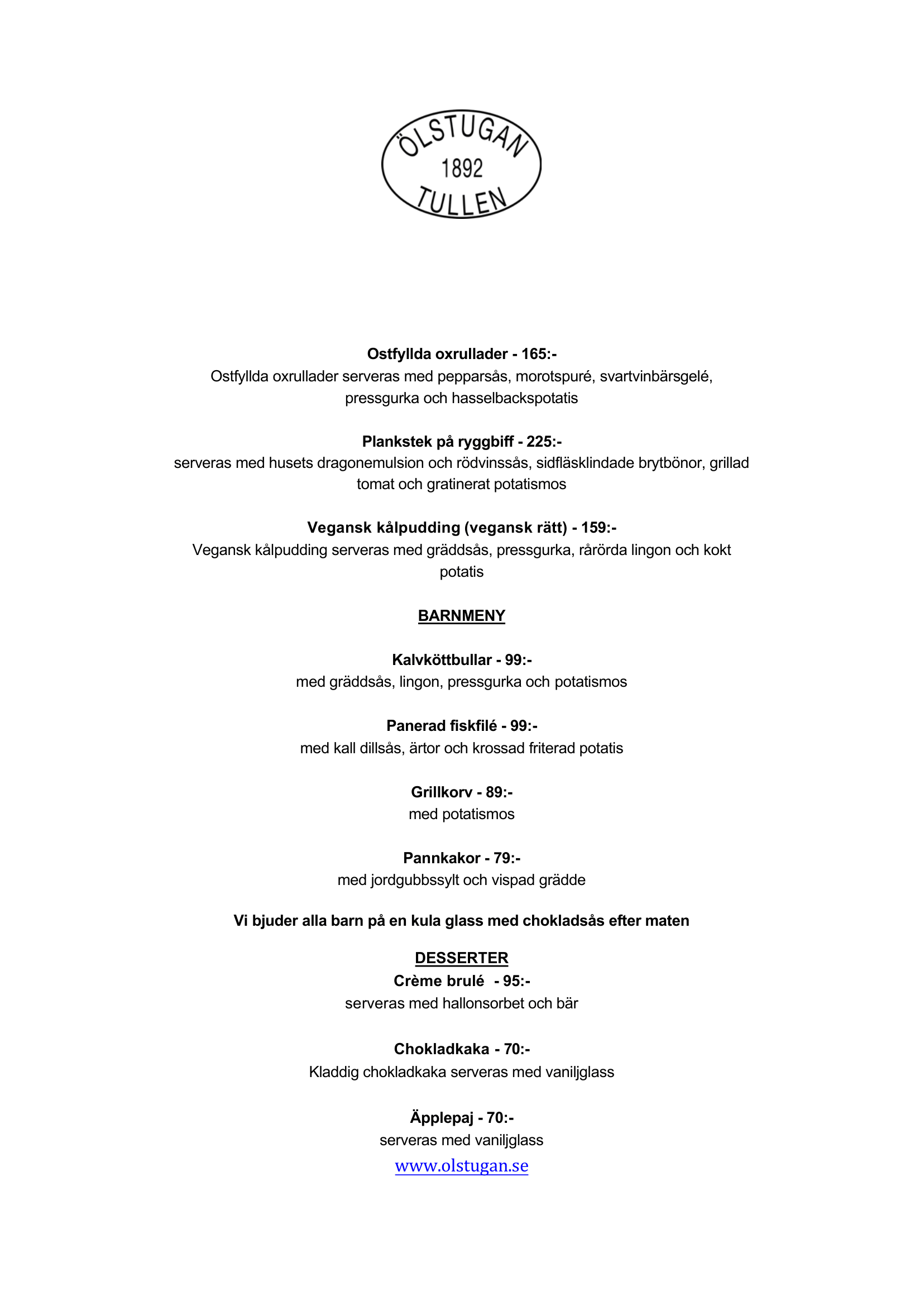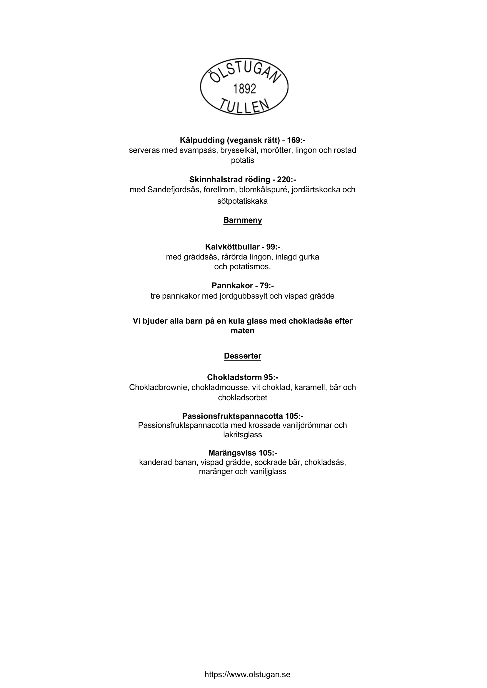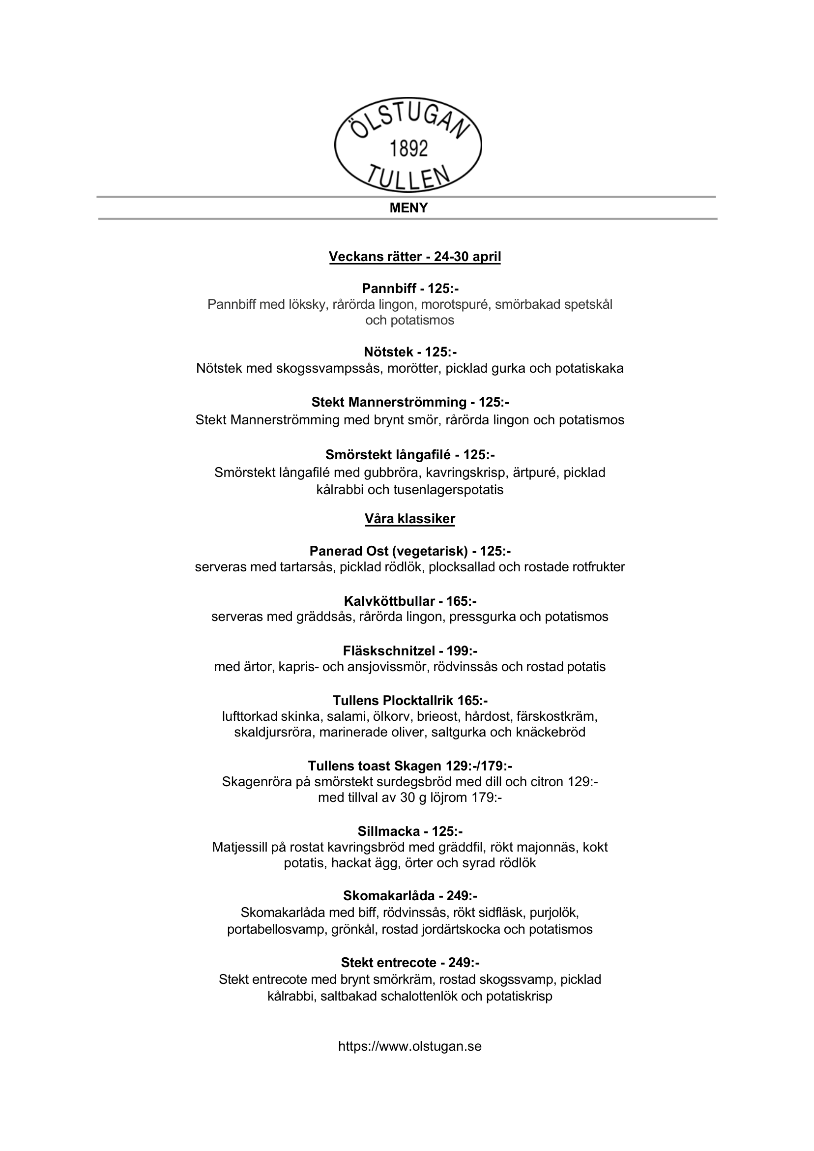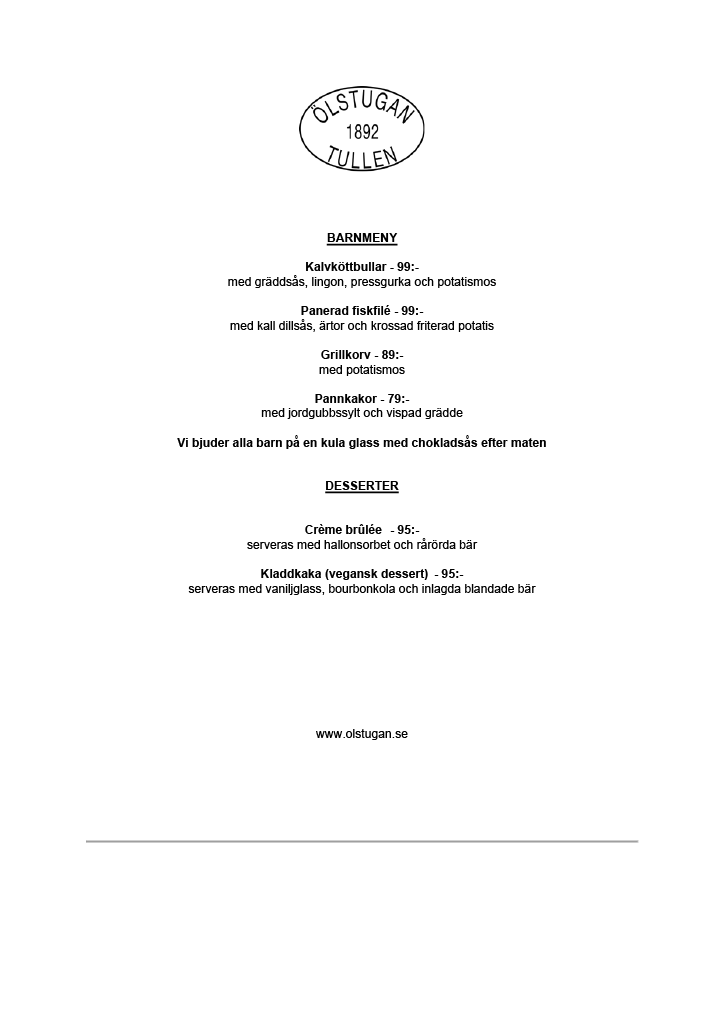 Sedan Ölstugan Tullen öppnades 2010 har vi öppnat ytterligare 15 restauranger i Sverige och en i Danmark. Vi har ett gott och nära samarbete med flera lokala bryggerier runt om i Sverige och vi serverar vällagad smakrik husmanskost alla dagar