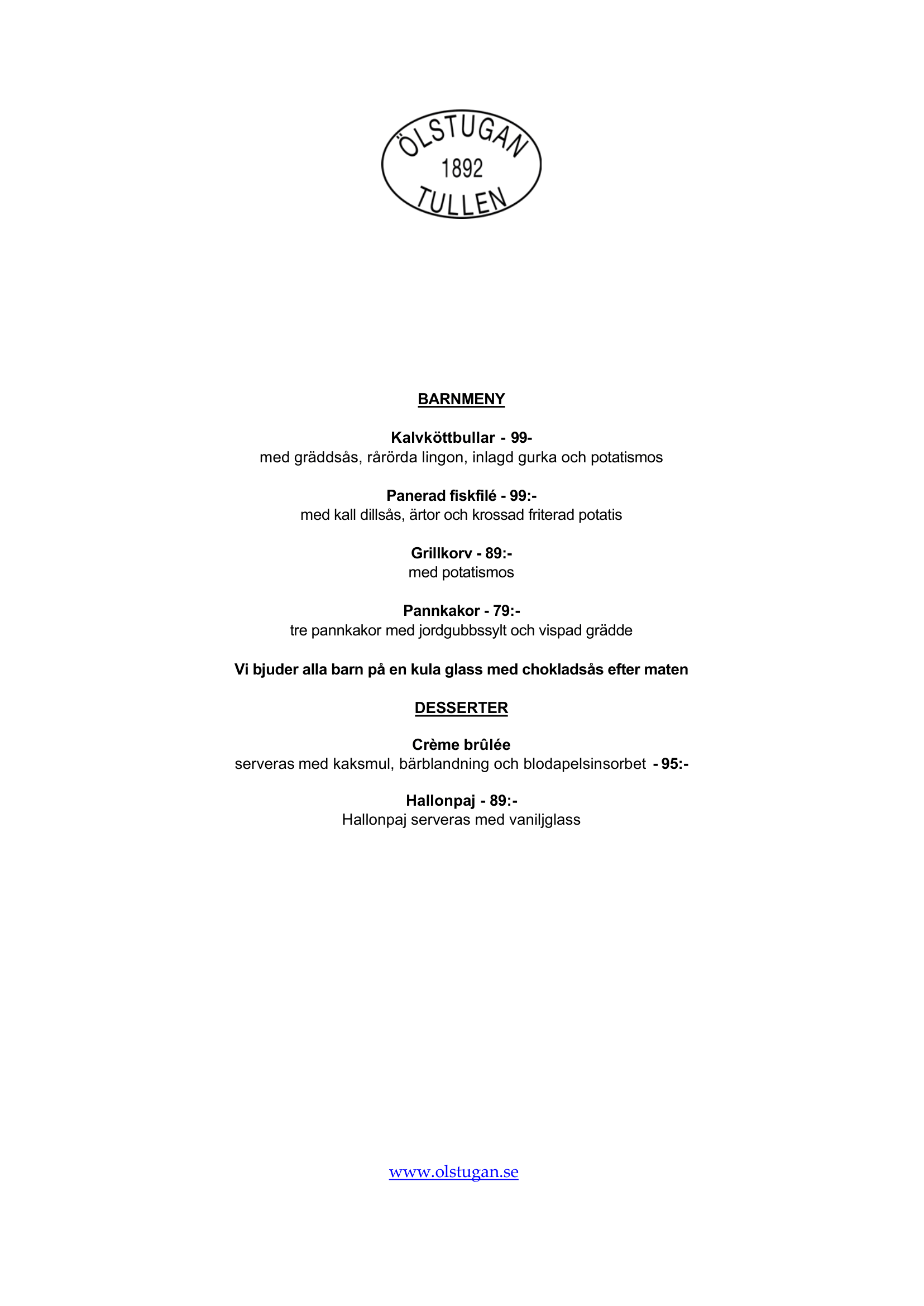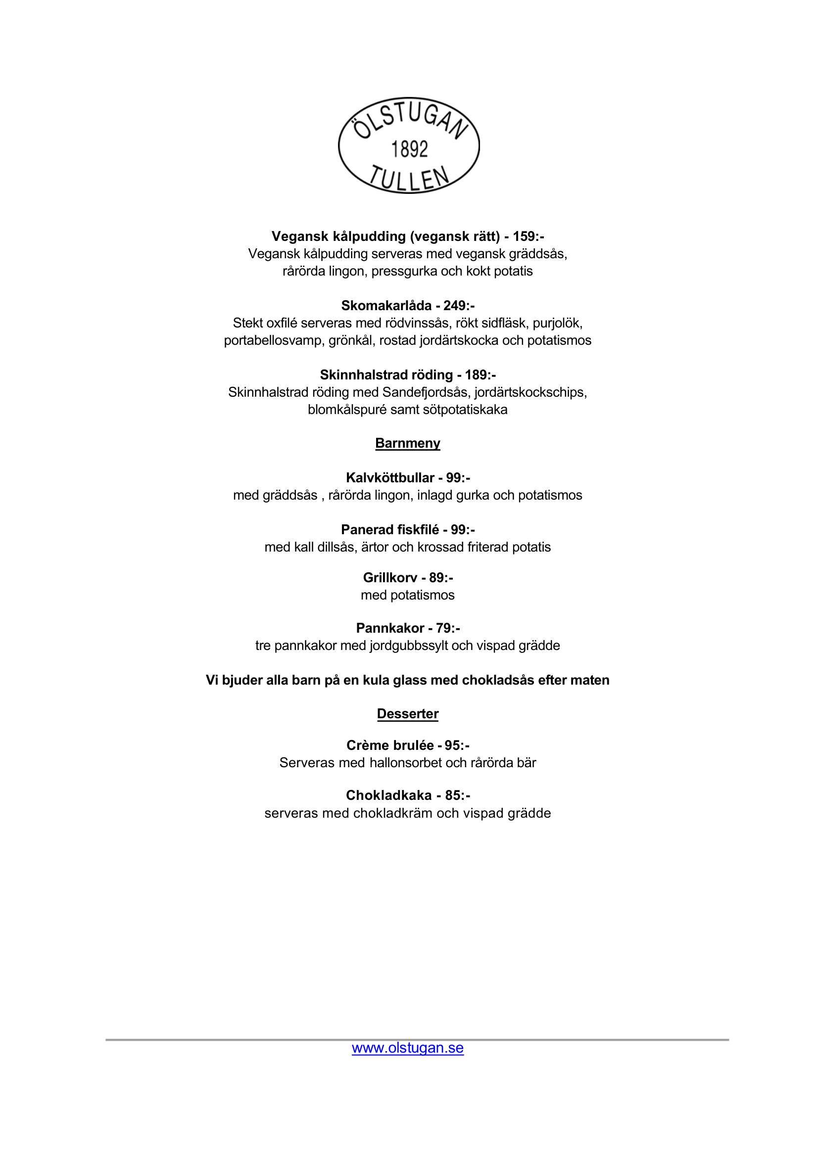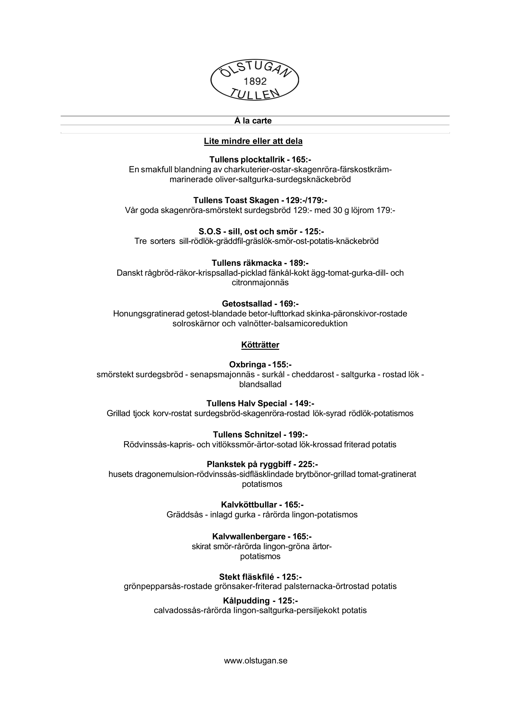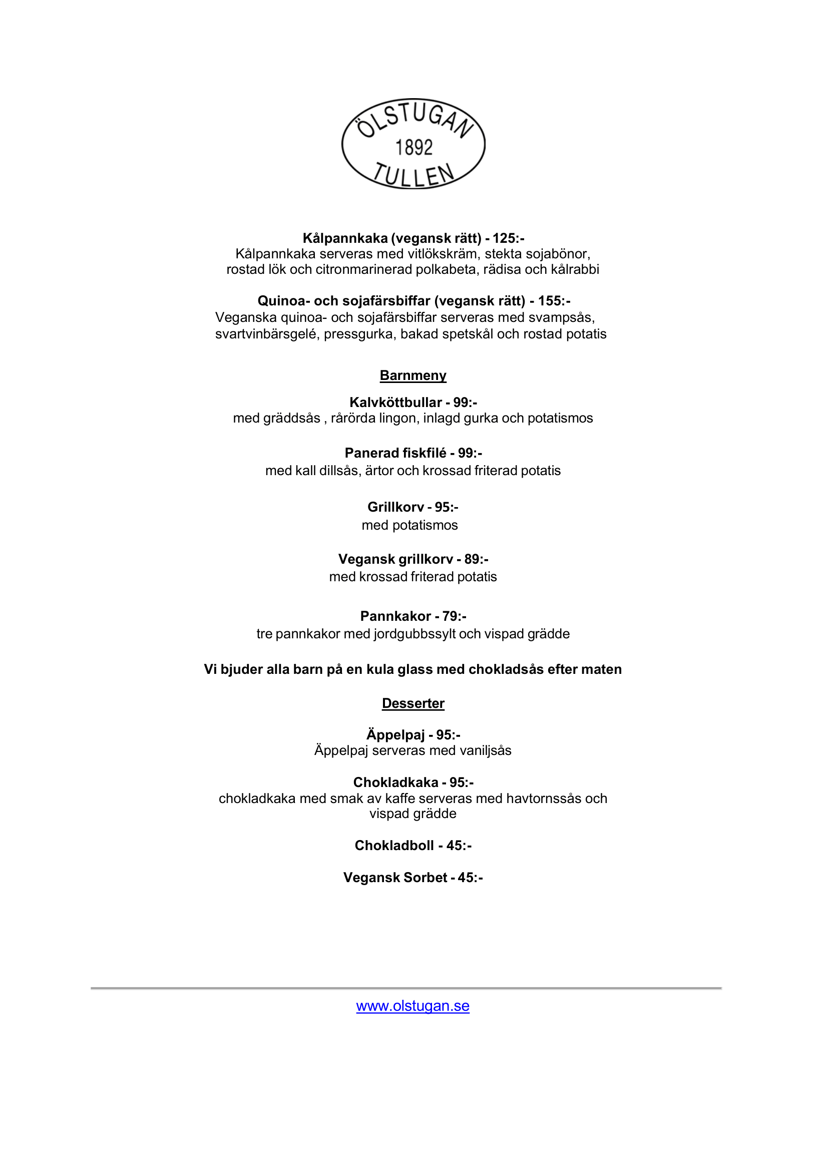 Sedan Ölstugan Tullen öppnades 2010 har vi öppnat ytterligare 15 restauranger i Sverige och en i Danmark. Vi har ett gott och nära samarbete med flera lokala bryggerier runt om i Sverige och vi serverar vällagad smakrik husmanskost alla dagar