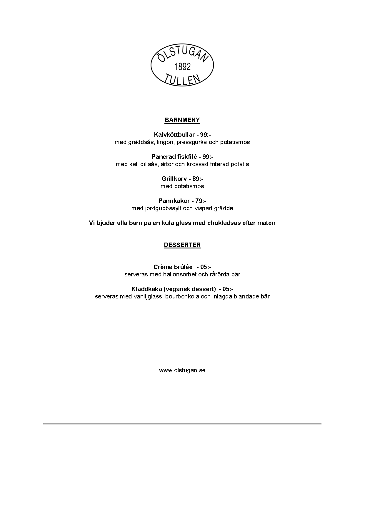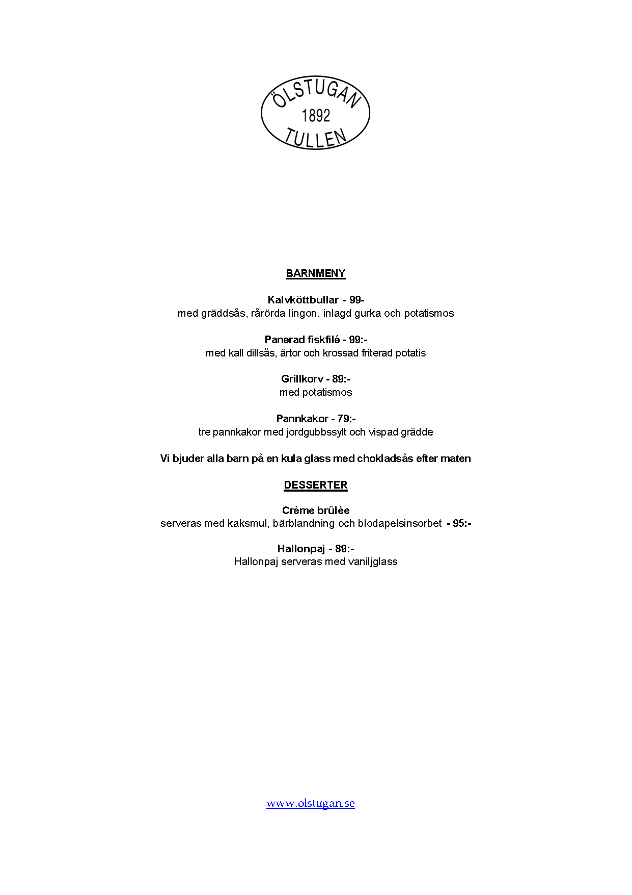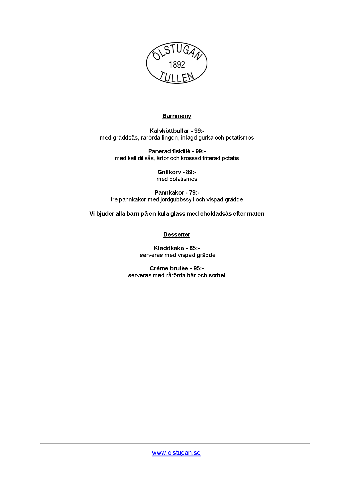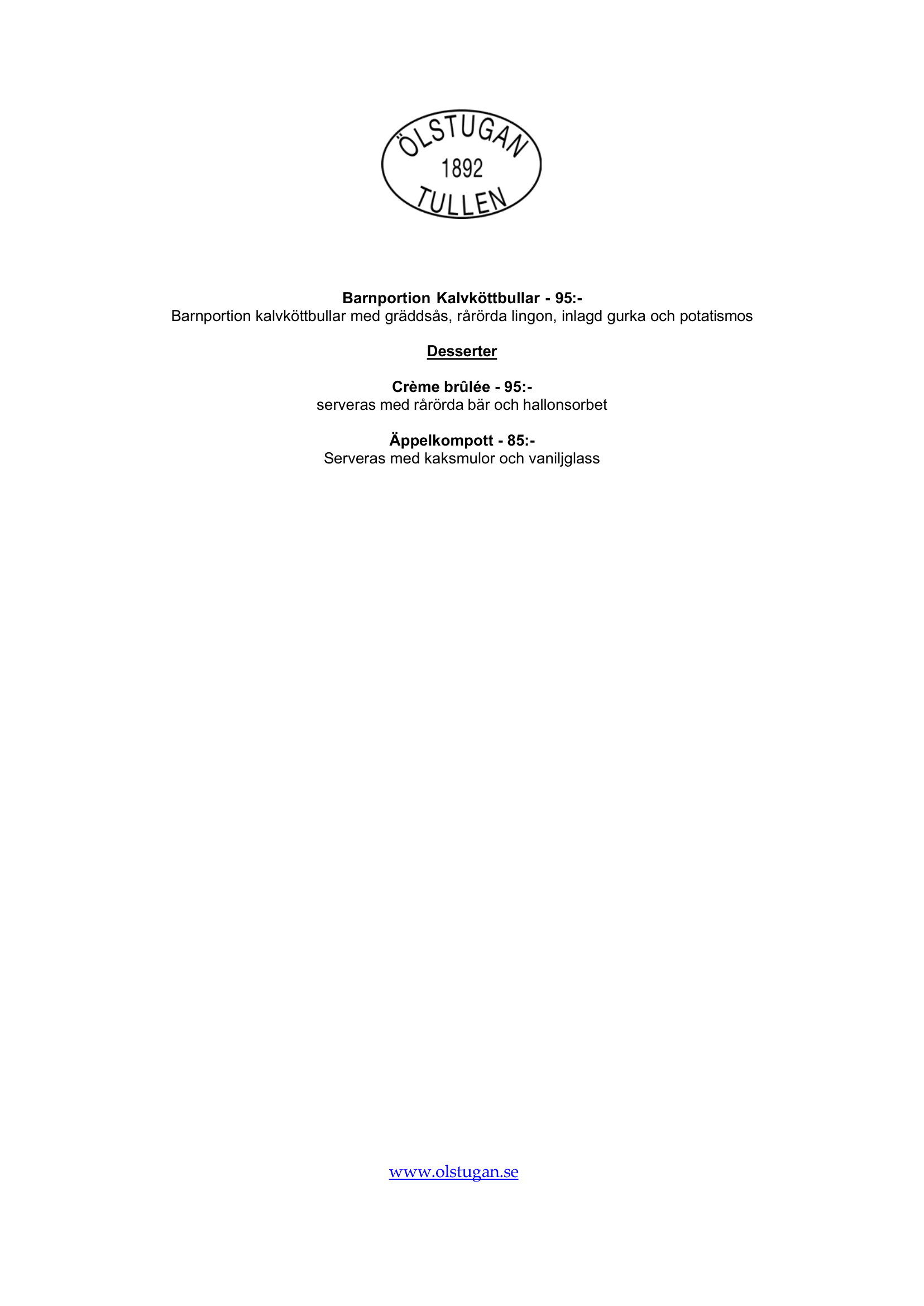 Sedan Ölstugan Tullen öppnades 2010 har vi öppnat ytterligare 15 restauranger i Sverige och en i Danmark. Vi har ett gott och nära samarbete med flera lokala bryggerier runt om i Sverige och vi serverar vällagad smakrik husmanskost alla dagar